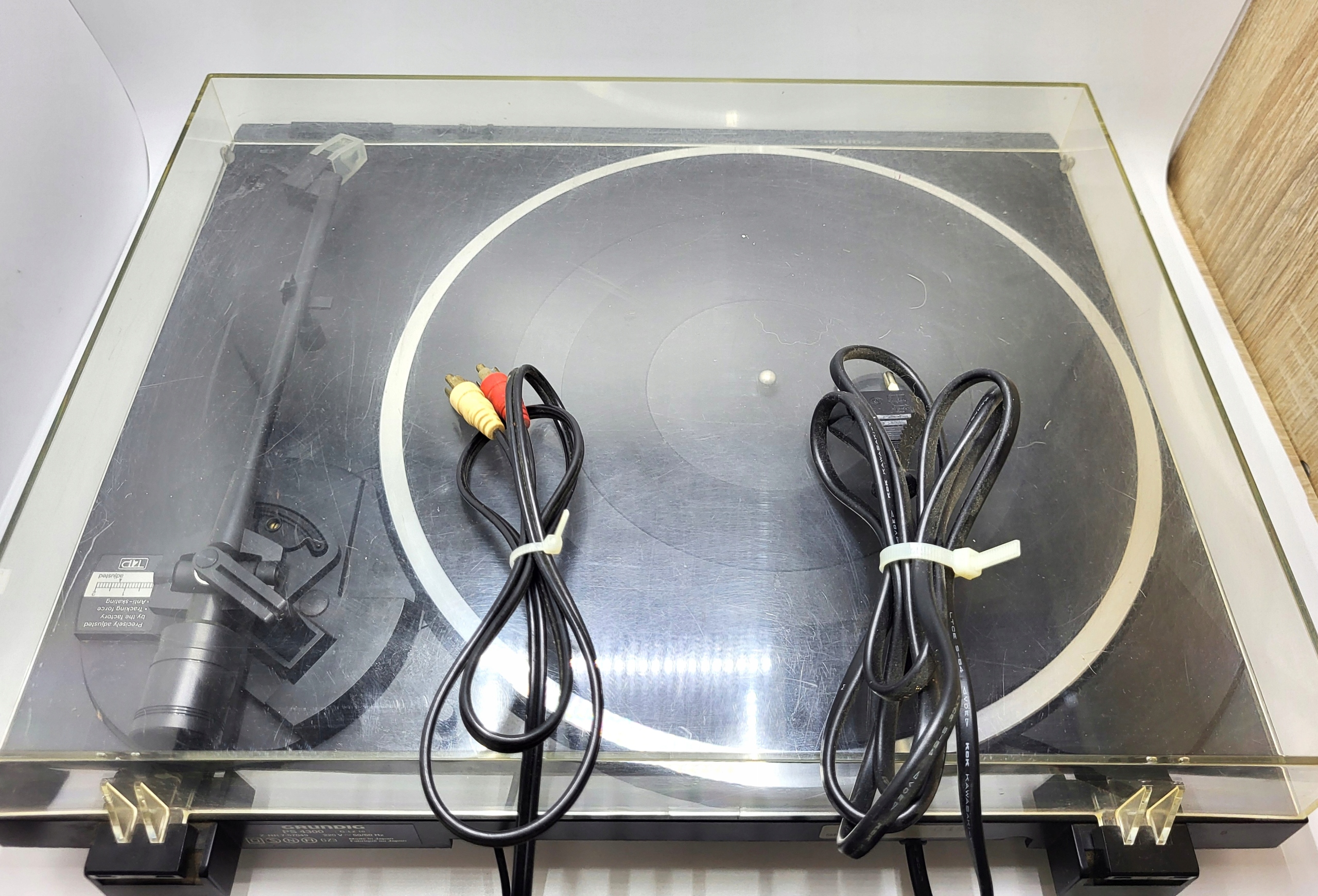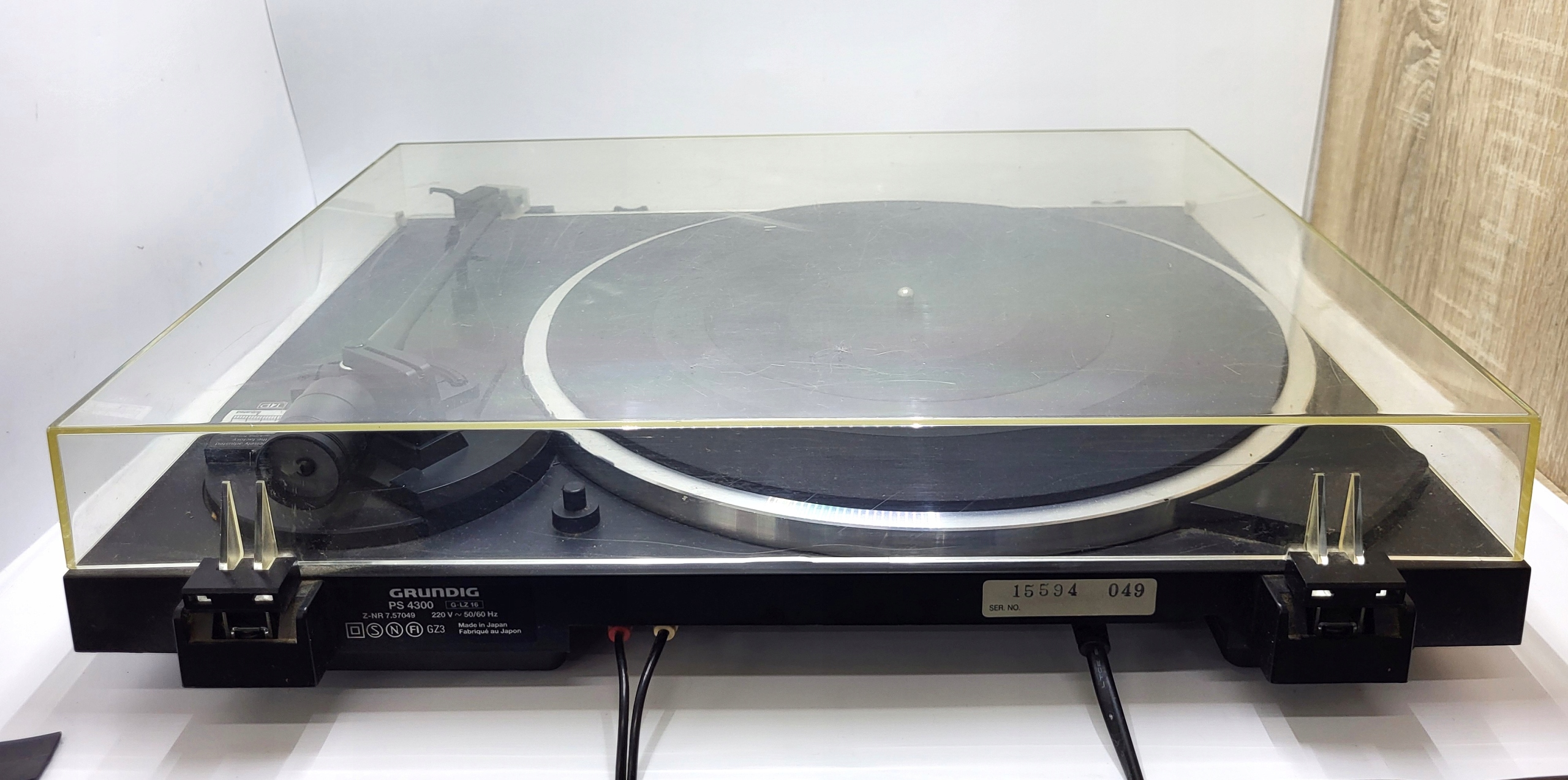 Grundig PS 4300 — полуавтоматический проигрыватель с ременным приводом и внешним литым алюминиевым диском, обеспечивающий стандартные скорости воспроизведения 33 и 45 об/мин. Устройство характеризуется низким колебанием синхронизации 0,07%, что гарантирует точное и стабильное воспроизведение звука.