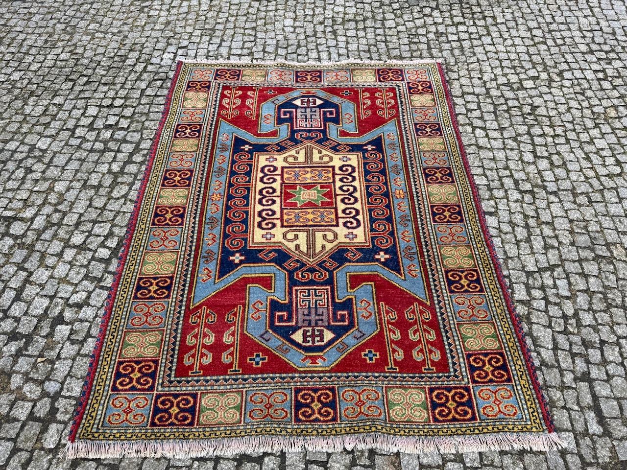 ТЕМА: Ковер ручной работы. Оригинальный восточный казак. Имеется бирка под ковриком + бумажный сертификат по запросу. В галерее до продажи она стоила 1700 евро, т.е. около 8000 злотых. Она уникальна своим дизайном. Ковер очень высокого качества.