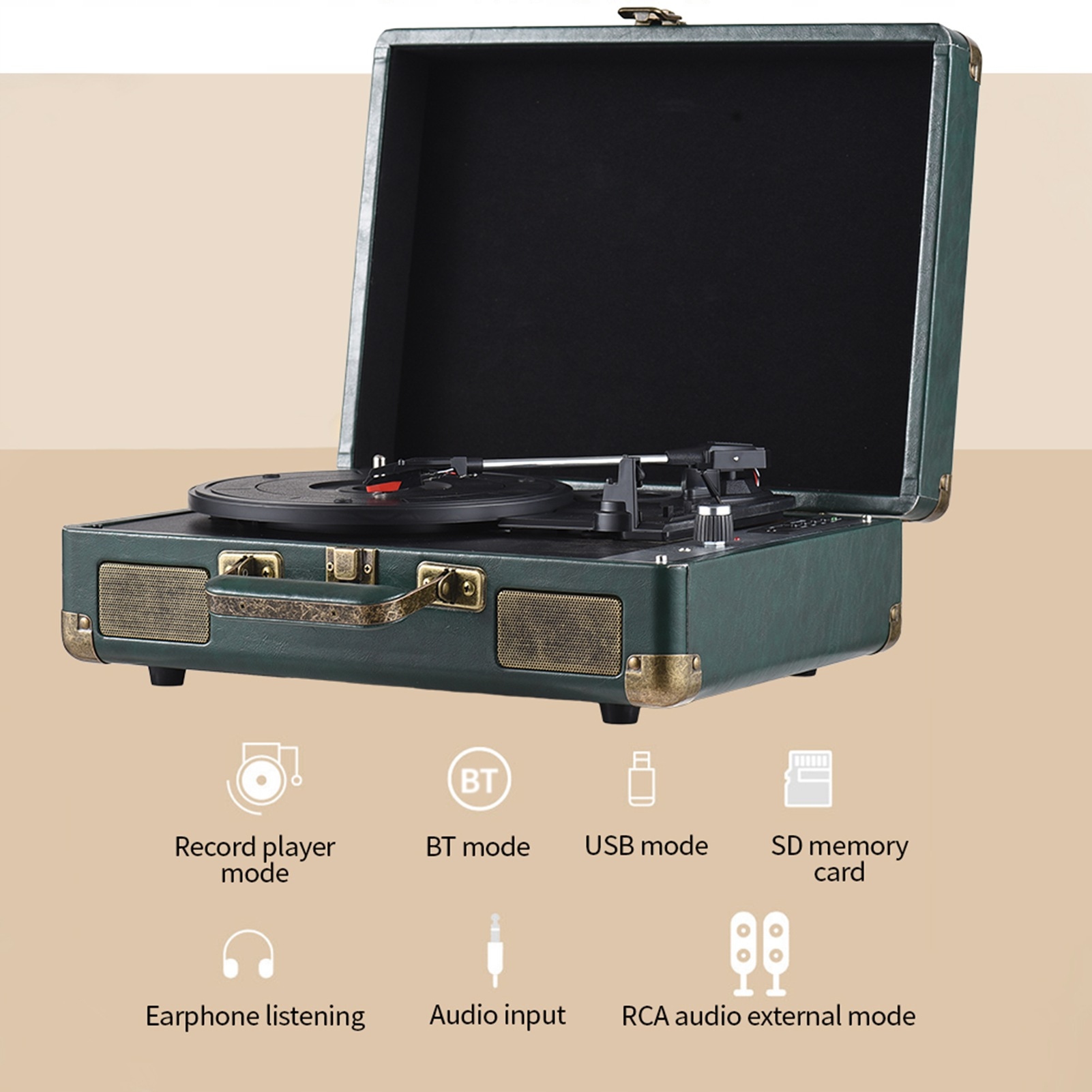 - 【Многие варианты воспроизведения】: в дополнение к винилу и BT, этот игрок диска поддерживает воспроизведение карт USB, SD и TF. Он также имеет входной вывод 3,5 мм, предлагающий различные способы прослушивания музыкальной коллекции.
