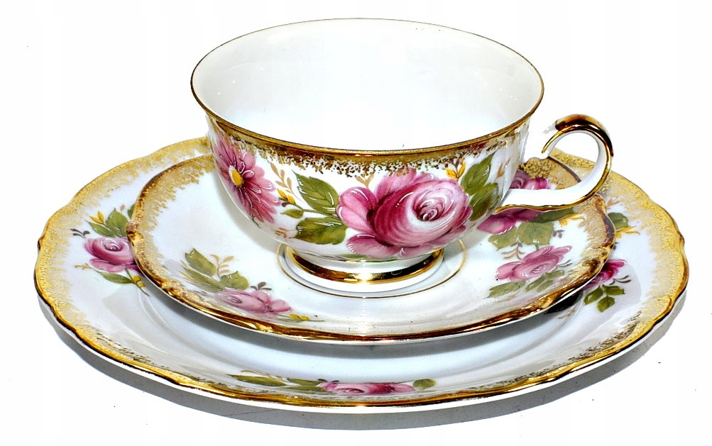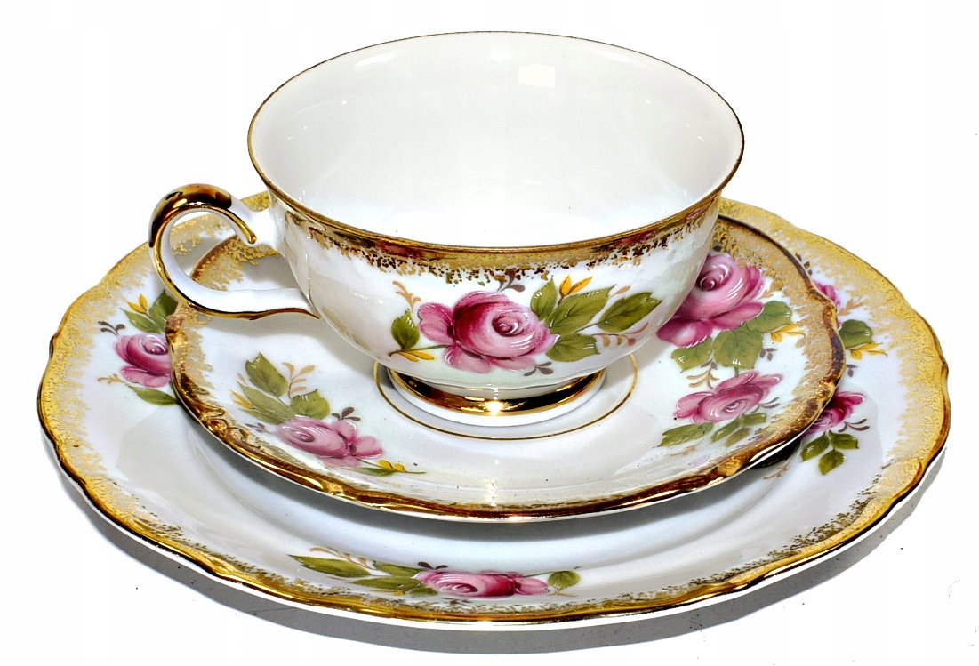 Набор завтрака из белого фарфора, украшенный позолочкой, тонким облегчением и цветами. Очень поиск a серия царистов winterling manufaktura.