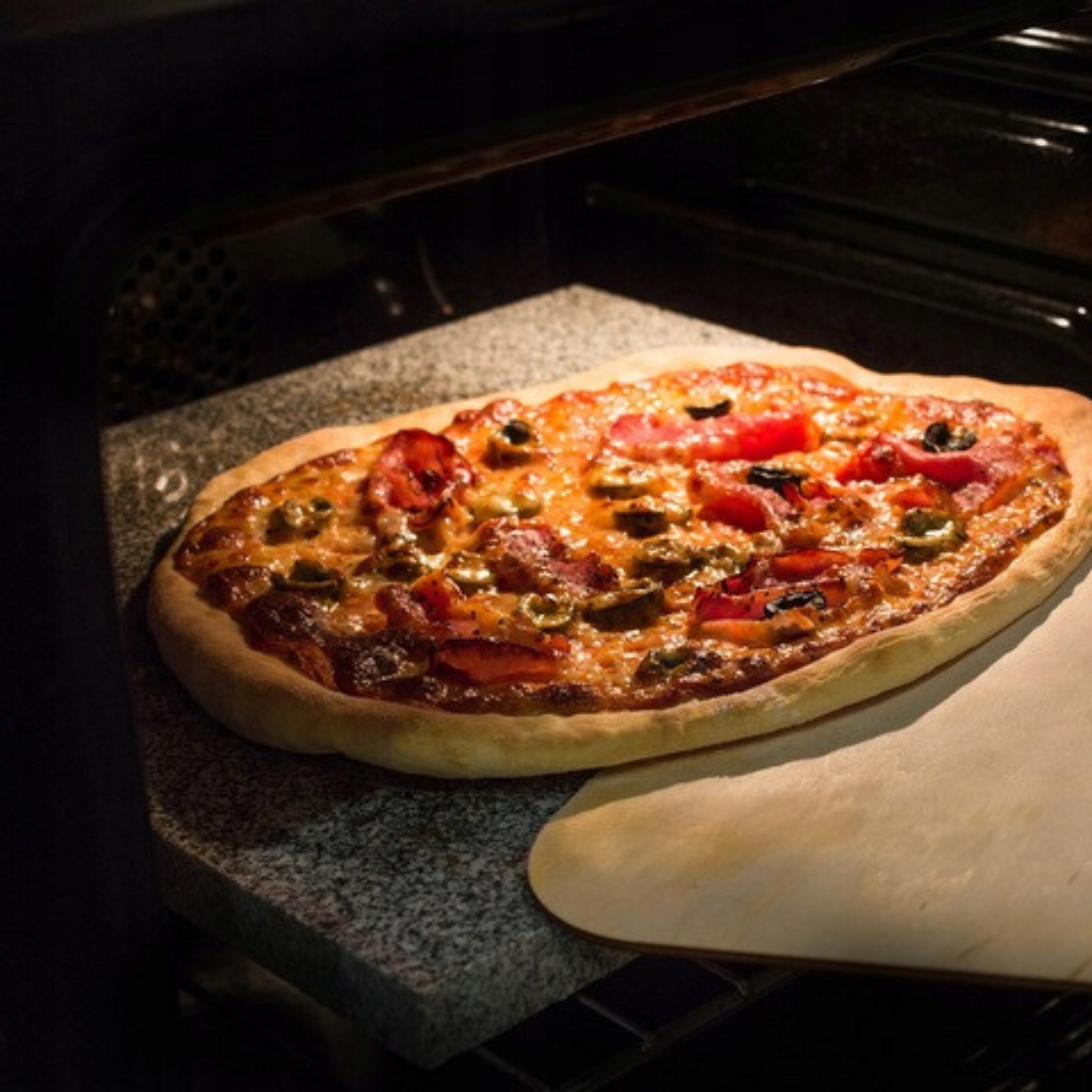 pizza stone с размерами 38x36 были разработаны таким образом, чтобы он соответствовал большинству стандартной духовки. Набор имеет практическую spatula , который облегчает передачу пиццы, хлеба или другого выпекания, предотвращение их повреждения
