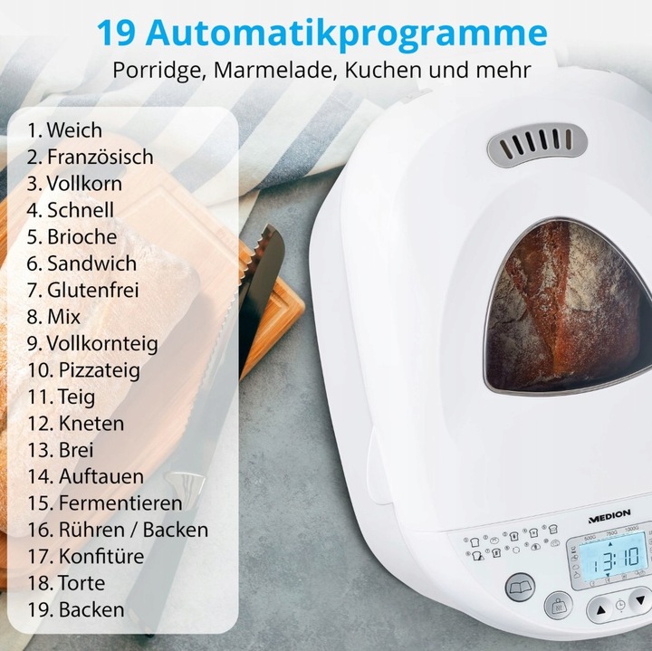 ✅automatic Хлеб для немецкой компании Medion 550W и 19 программ и 550W