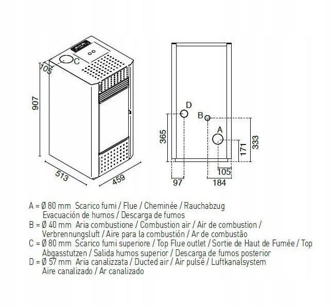 - Compliance with the standards: EN14785 - Bimschv II - 15a B -VG - LRV/VKF