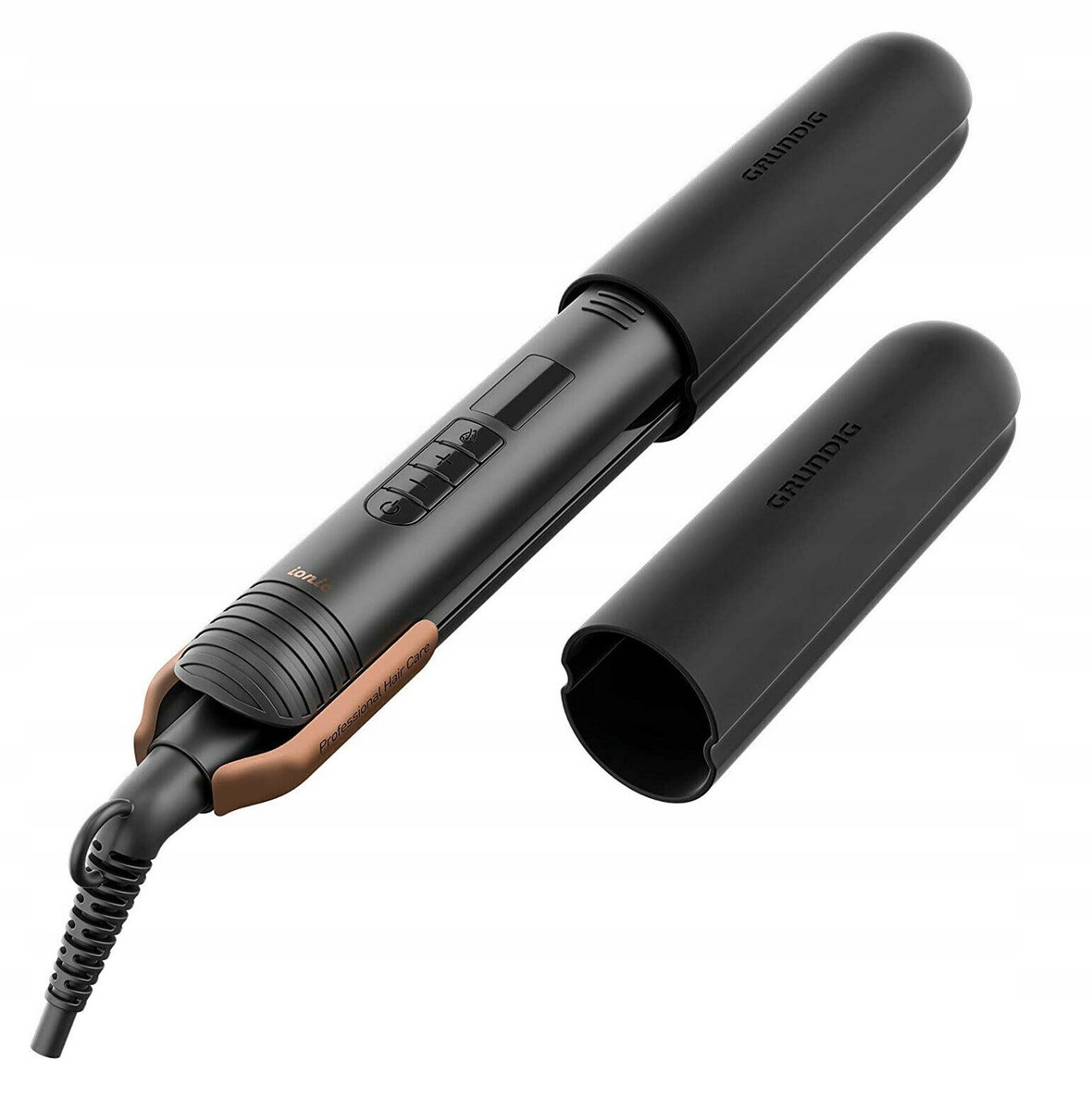 - Функции: Автоматическое выключение, Блокировка пластины для удобства хранения, Ионизация, Можно использовать на влажных или влажных волосах, Регулировка температуры, ЖК-дисплей.