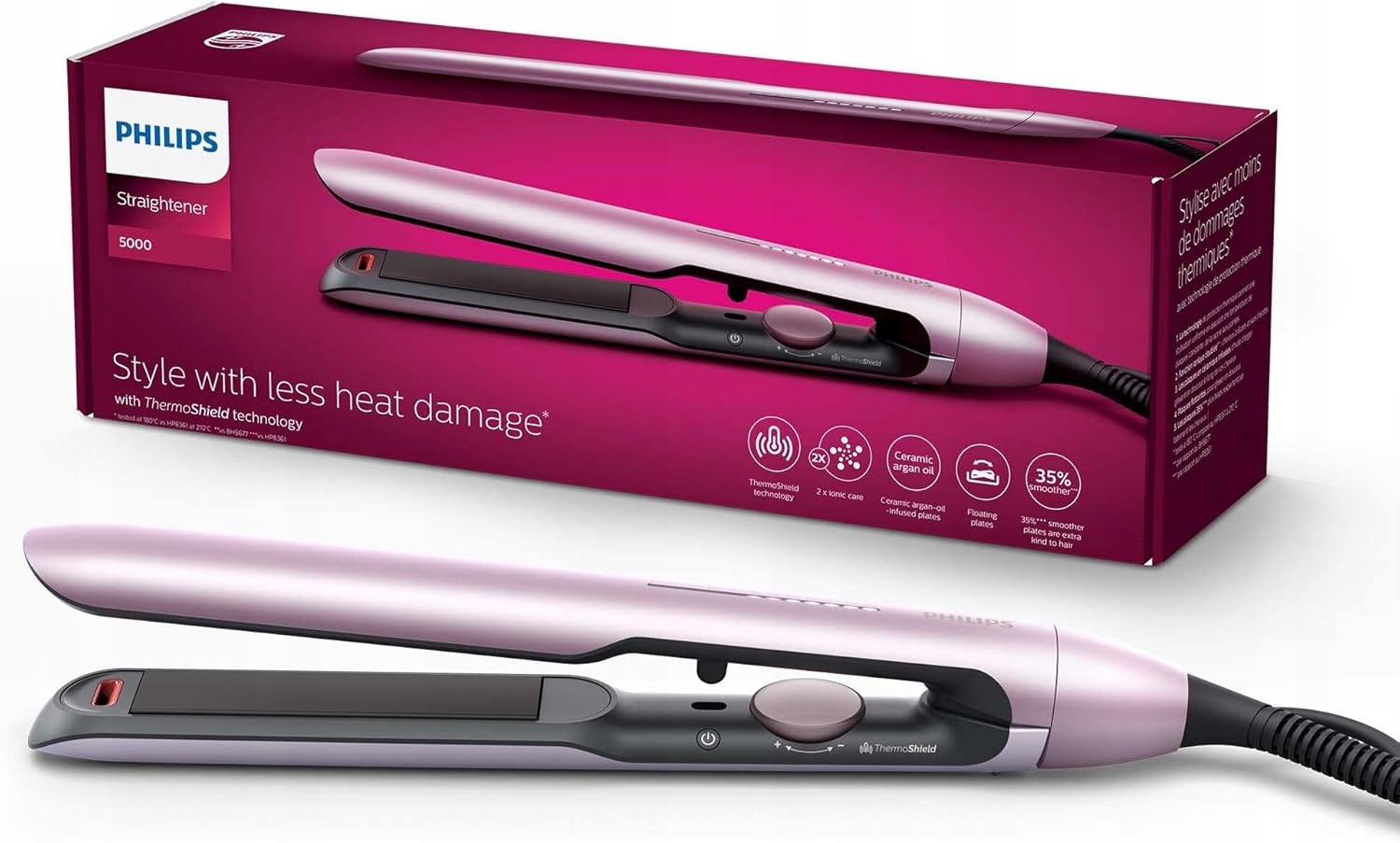 Выпрямитель оснащен керамическими пластинами с аргановым маслом. масло, благодаря которому укладка происходит быстро и легко, а эффективная работа делает волосы гладкими и шелковистыми.