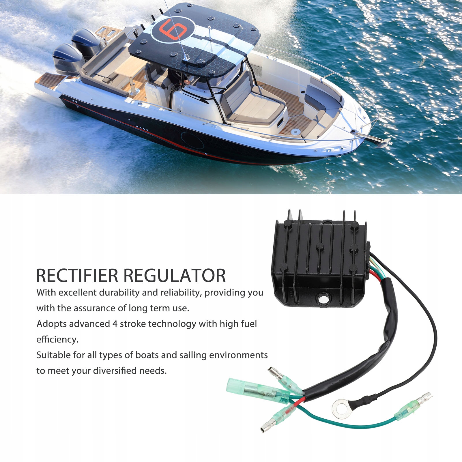1. Надежность и долговечность: изготовлен из АБС-пластика, обладает превосходной прочностью и надежностью. Его можно использовать в течение длительного периода времени, гарантируя пользователям стабильность и надежность. 2. ЭНЕРГОСБЕРЕЖЕНИЕ И ЭКОЛОГИЧНОСТЬ: использование передовой 4-тактной технологии позволяет повысить эффективность использования топлива и сократить выбросы парниковых газов. Экологичность и энергосбережение. 3, ПРОСТОТА В ЭКСПЛУАТАЦИИ: Простая конструкция, оснащенная простым в использовании интерфейсом управления. Пользователи могут легко маневрировать лодкой, обеспечивая комфортное использование. 4. МНОГОФУНКЦИОНАЛЬНОЕ ИСПОЛЬЗОВАНИЕ: подходит для различных типов лодок и условий плавания, может удовлетворить разнообразные потребности пользователей и реализовать функцию стабильного регулирования напряжения. 5. АДАПТИВНОСТЬ: этот подвесной выпрямитель подходит для 4-тактного подвесного двигателя мощностью 20 л.с. Перед заказом проверьте, совместимо ли оно.