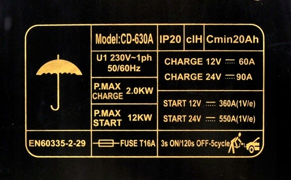 Время зарядки зависит от уровня разряда аккумулятора и его номинальной емкости. Оснащен переключателем выбора зарядного напряжения 12В или 24В, тепловой защитой от чрезмерного нагрева трансформатора, например, из-за короткого замыкания элемента аккумуляторной батареи.