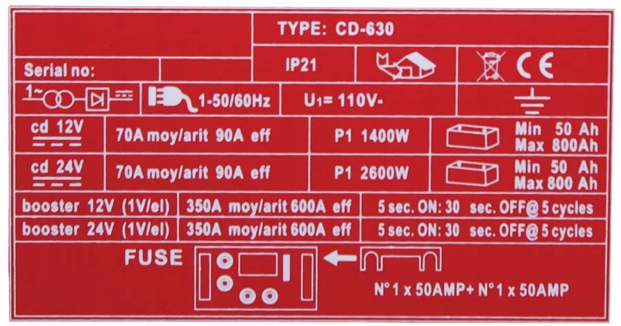 - Заряжает аккумуляторы емкостью: 60 - 800Ач
