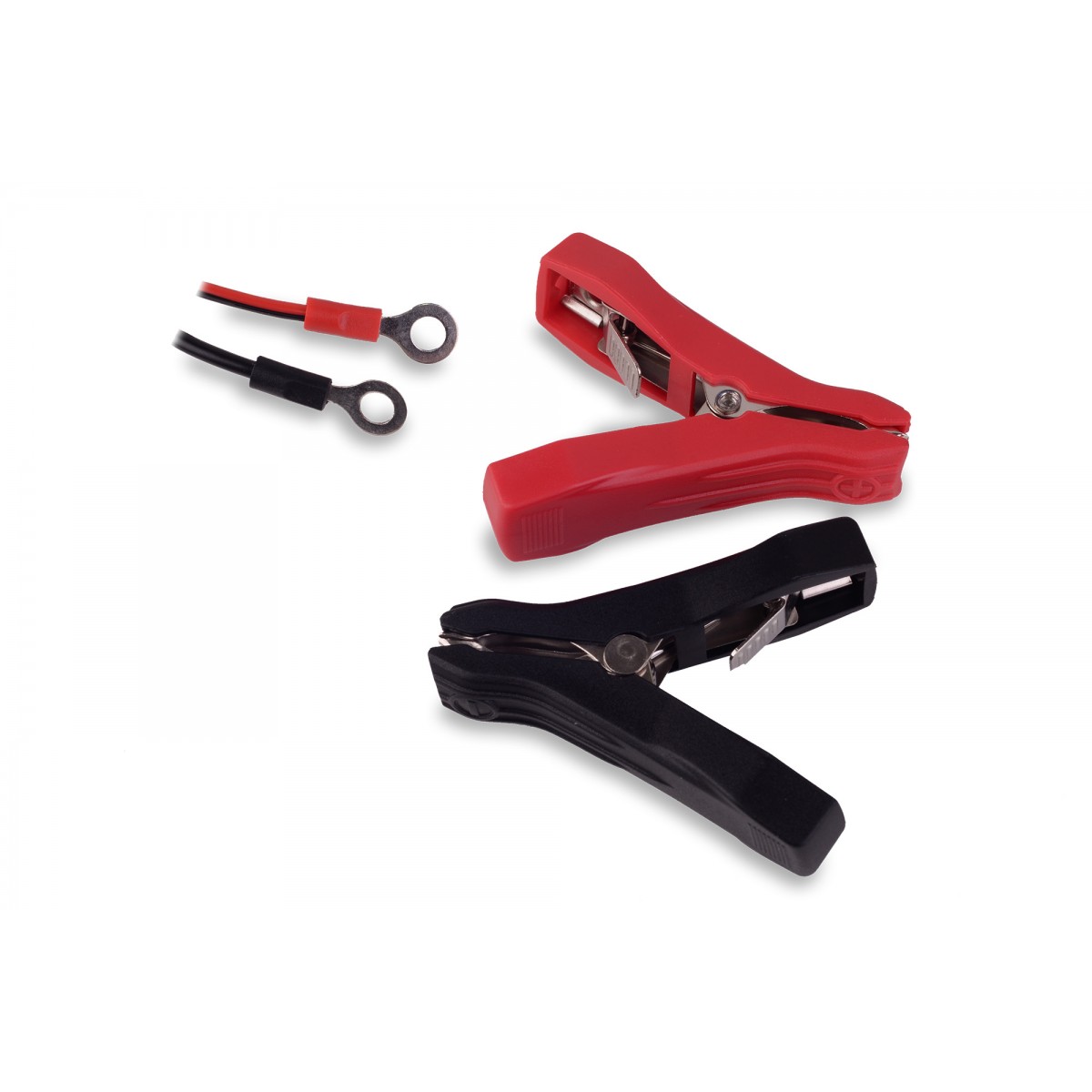 Зажимы имеют небольшие наконечники, позволяющие подключаться к меньшим клеммам, а съемные встроенные кольцевые клеммы обеспечивают постоянное подключение к аккумулятору.
