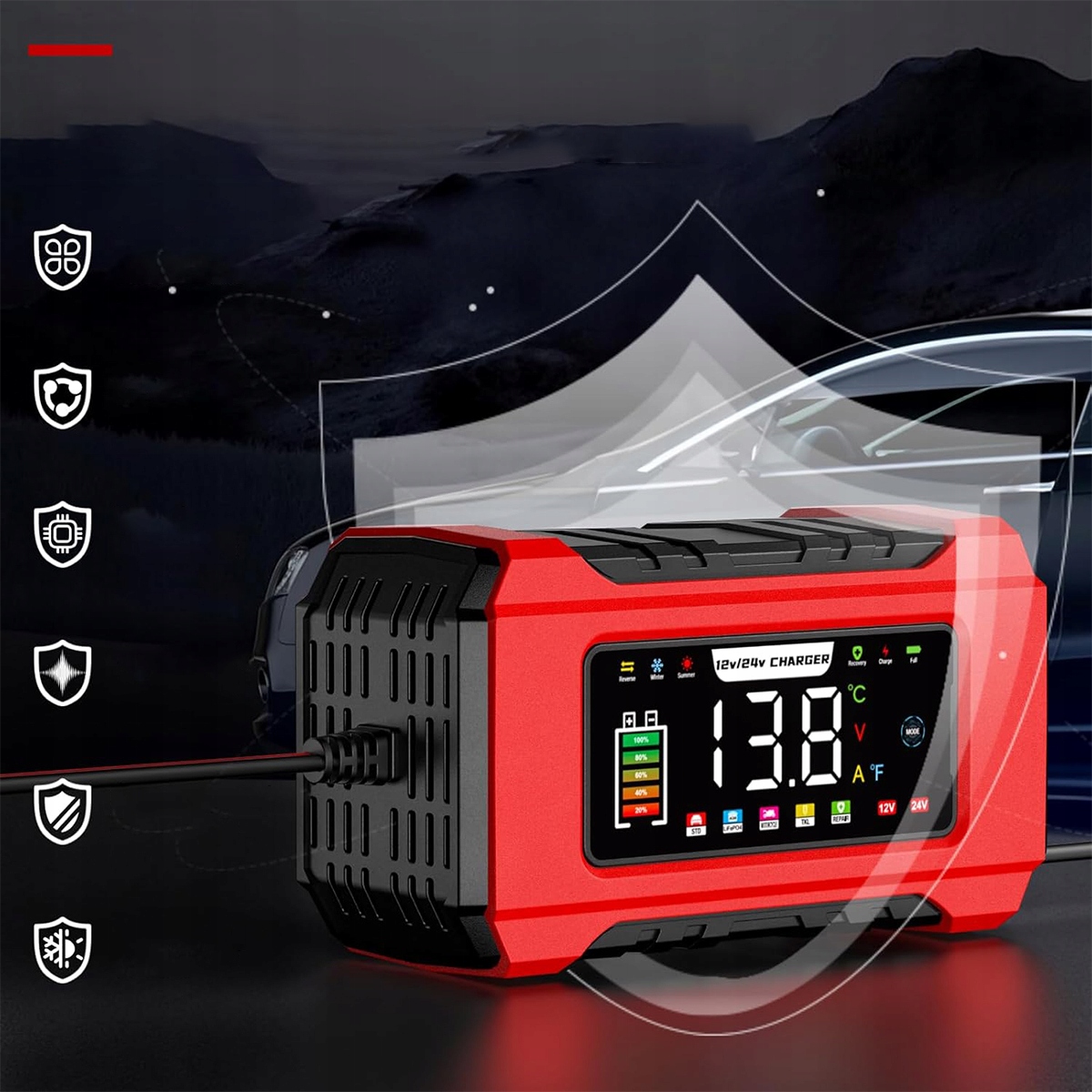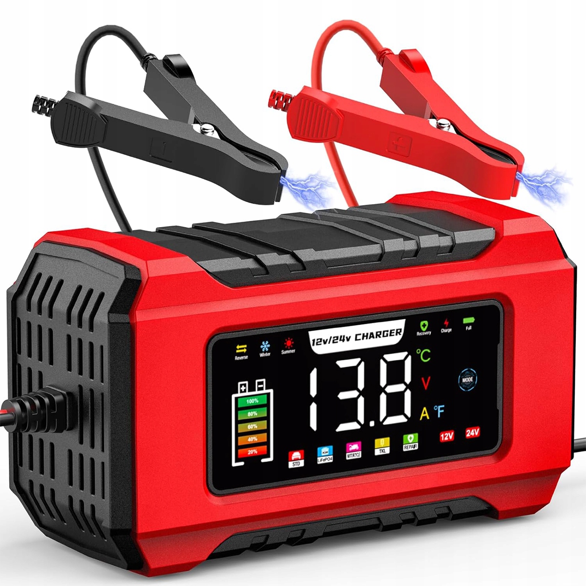 ✅с режимом ремонтно-технической зарядки, 9-ступенчатой зарядкой, ЖК-дисплеем для легковых, грузовых автомобилей, мотоциклов и лодок - совместимо со свинцово-кислотными, AGM, EFB, LiFePO4 аккумуляторами