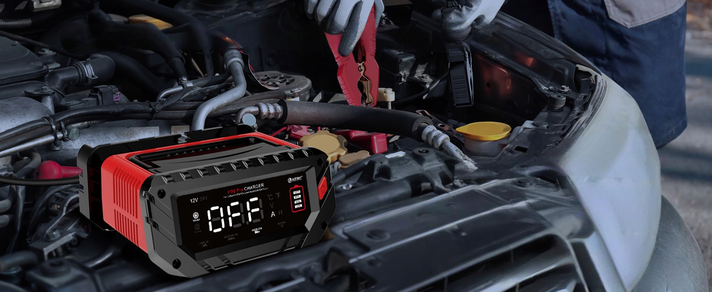 �【Широкое применение】Автомобильное зарядное устройство используется только для аккумуляторов LiFePo4 12 В/24 В, литиевых и свинцово-кислотных аккумуляторов (AGM, кальциевых, гелевых, MF, EFB, SLA, VRLA, WET и т. д.). Оно широко используется для обеспечения безопасной и эффективной зарядки автомобилей, мотоциклов, лодок, газонокосилок и т. д.