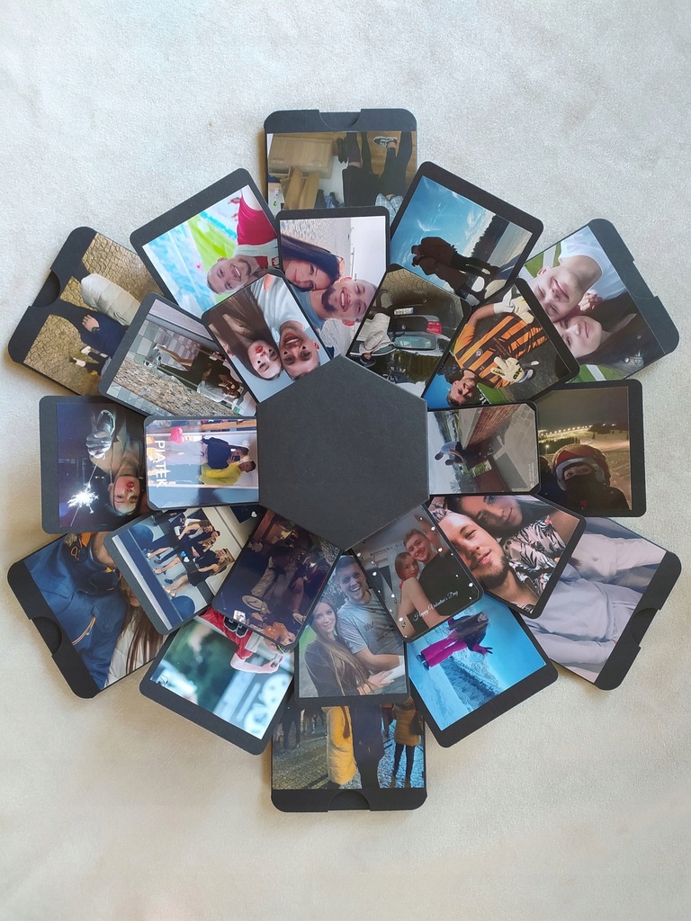 ➡️ В этой шкатулке ручной работы 24 места для фотографий. При желании можно разместить больше фотографий, например, по бокам. На самом верху находится небольшая подарочная коробочка, туда можно положить какую-нибудь мелочь - кольцо, часы или сладости.