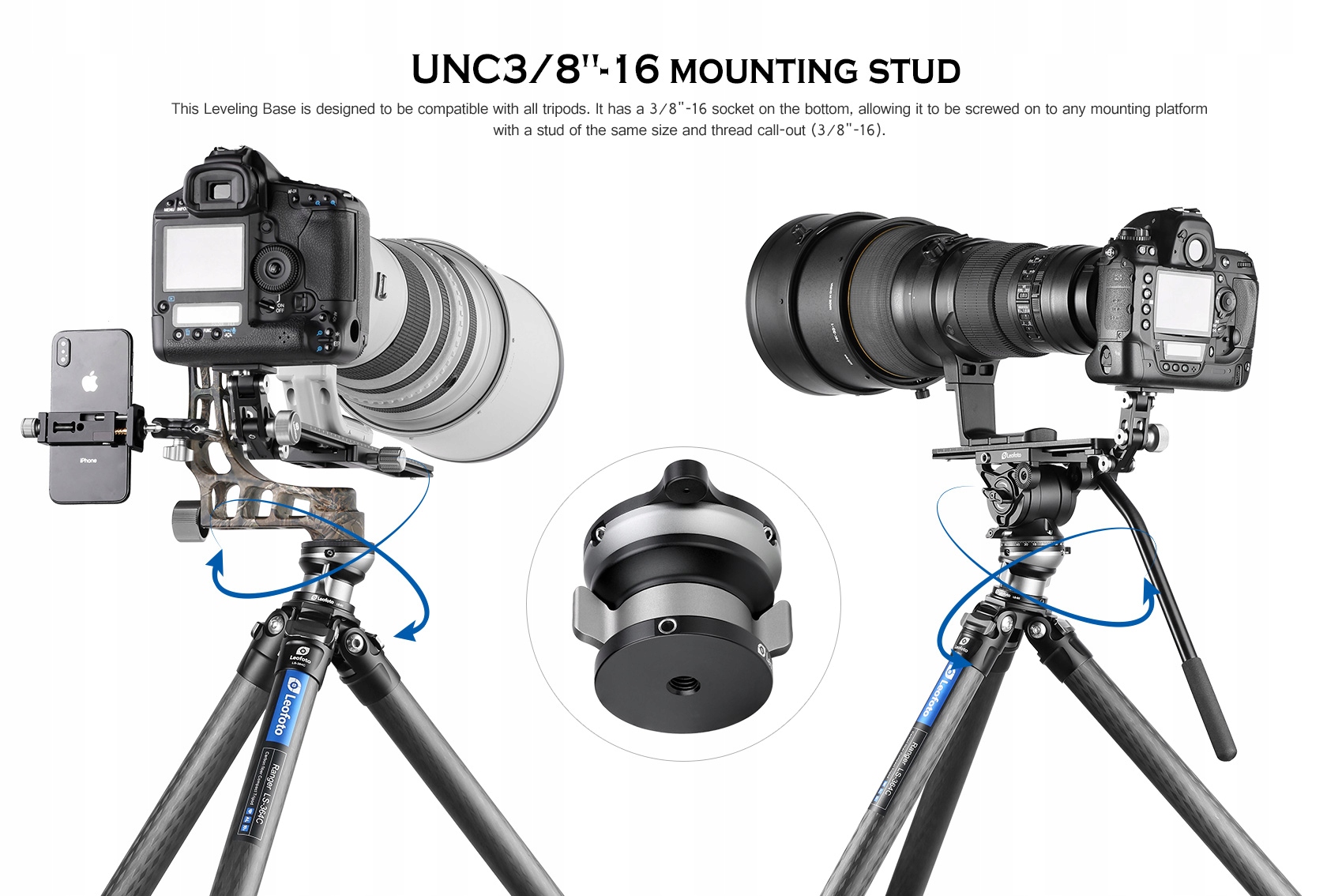 Leofoto LB-75 — это нивелирная база, которая действует как полусфера и обеспечивает диапазон нивелирования +/- 15°. Его можно установить на любой штатив, и он позволяет фотографу выравнивать штатив быстрее, чем регулируя ножки. Установленное положение легко фиксируется с помощью ручки-бабочки. ЛБ-75 изготовлен из лучших материалов и позволяет точно работать с оборудованием массой до 25 кг.