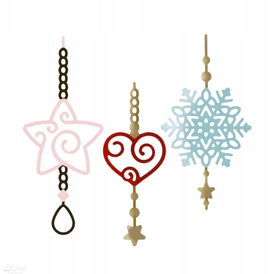 Набор из трех плашек в виде изящных ажурных подвесок. Они позволят вам красиво украсить различные зимние и рождественские проекты, такие как поздравительные открытки, работы для скрапбукинга и домашний декор, например. альбомы и рамки. Также они будут полезны для создания стильной подарочной упаковки и ЛО.