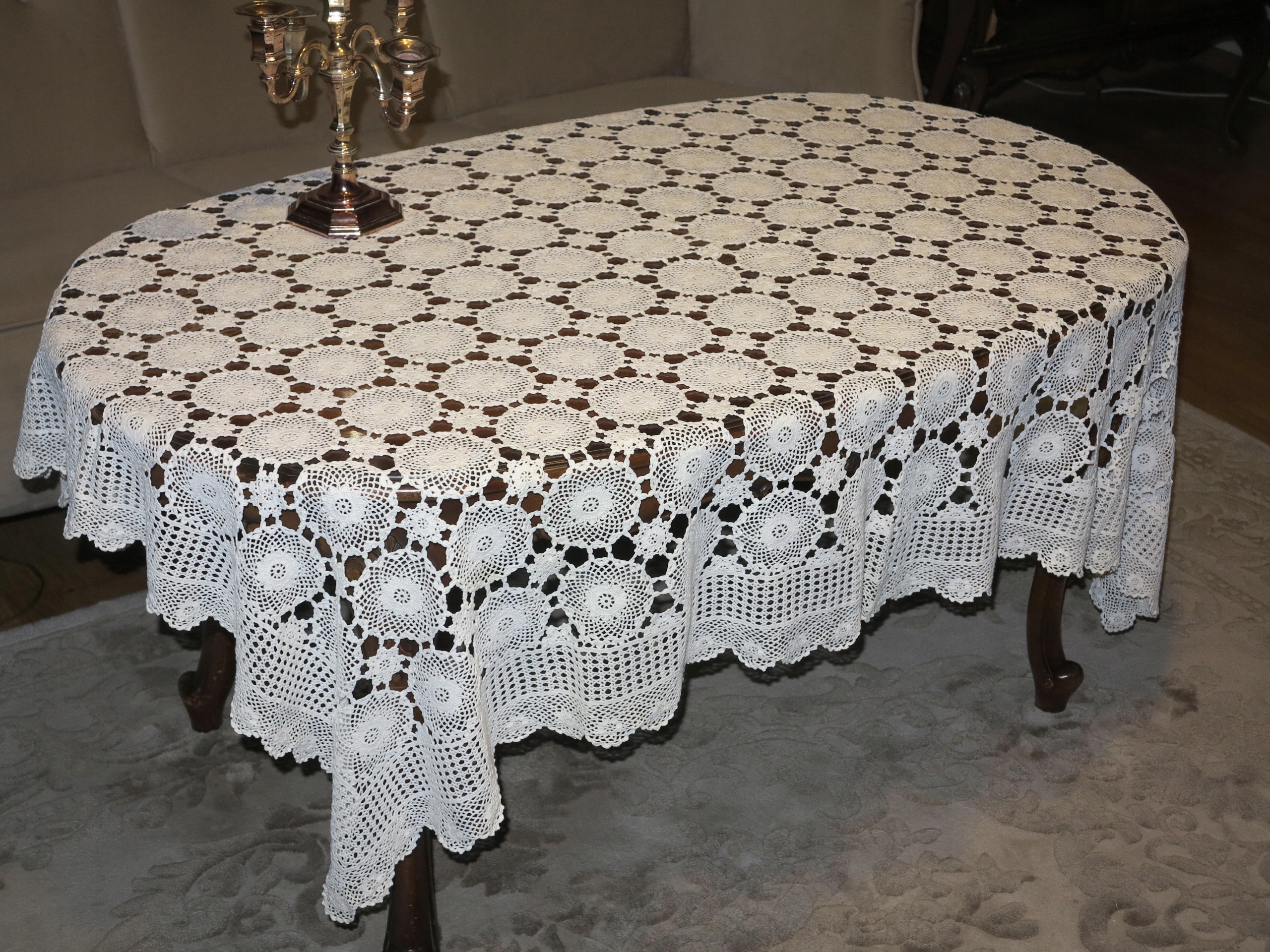 ВИРОБИ-КРАСИВА БІЛУШЕНЬКА СКАТЕРТИНА КОРДОНКОВА В РОЗЕТКИ 172/130