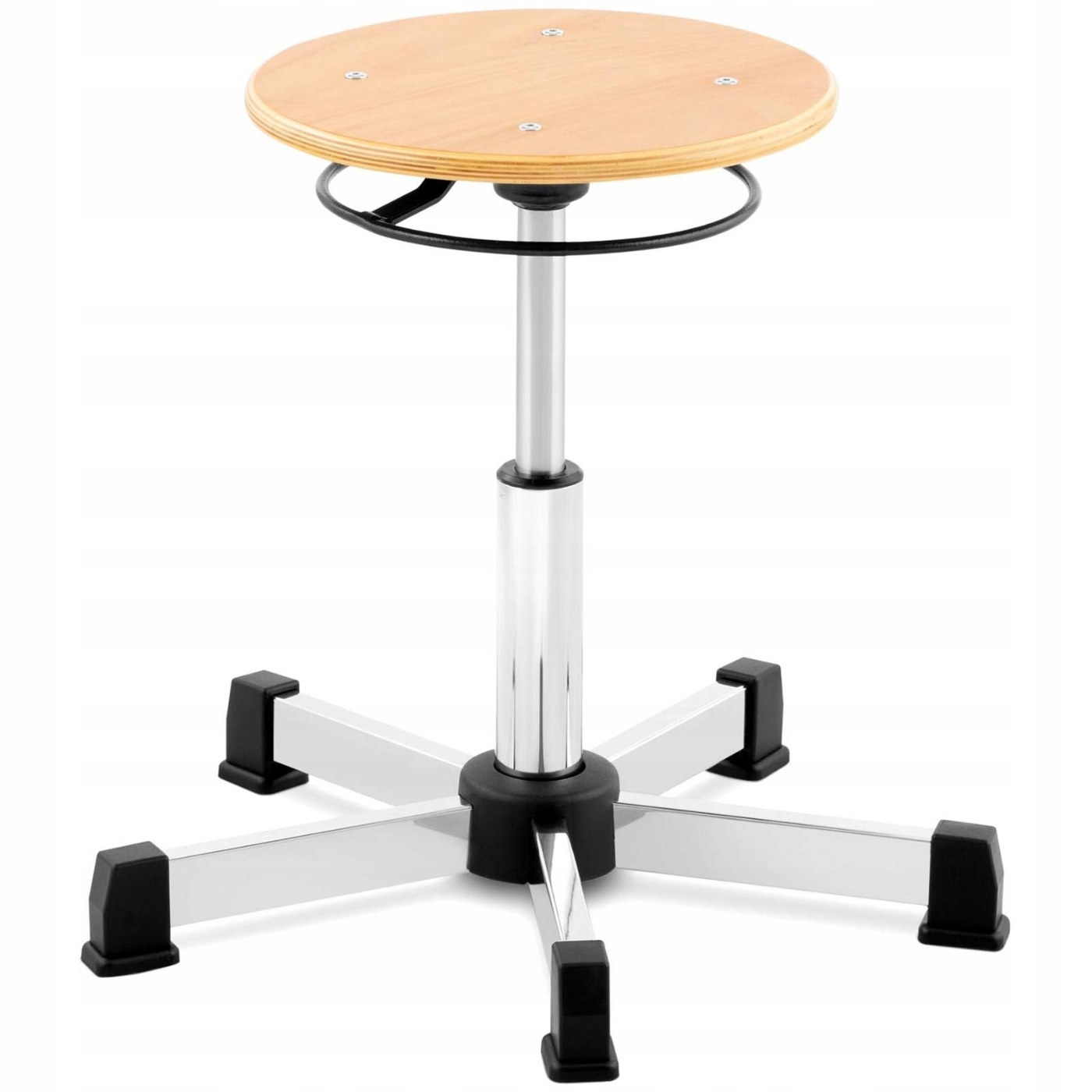 Табурет для мастерской - 120 кг - дерево, хромированные элементы - высота 350 - 485 мм