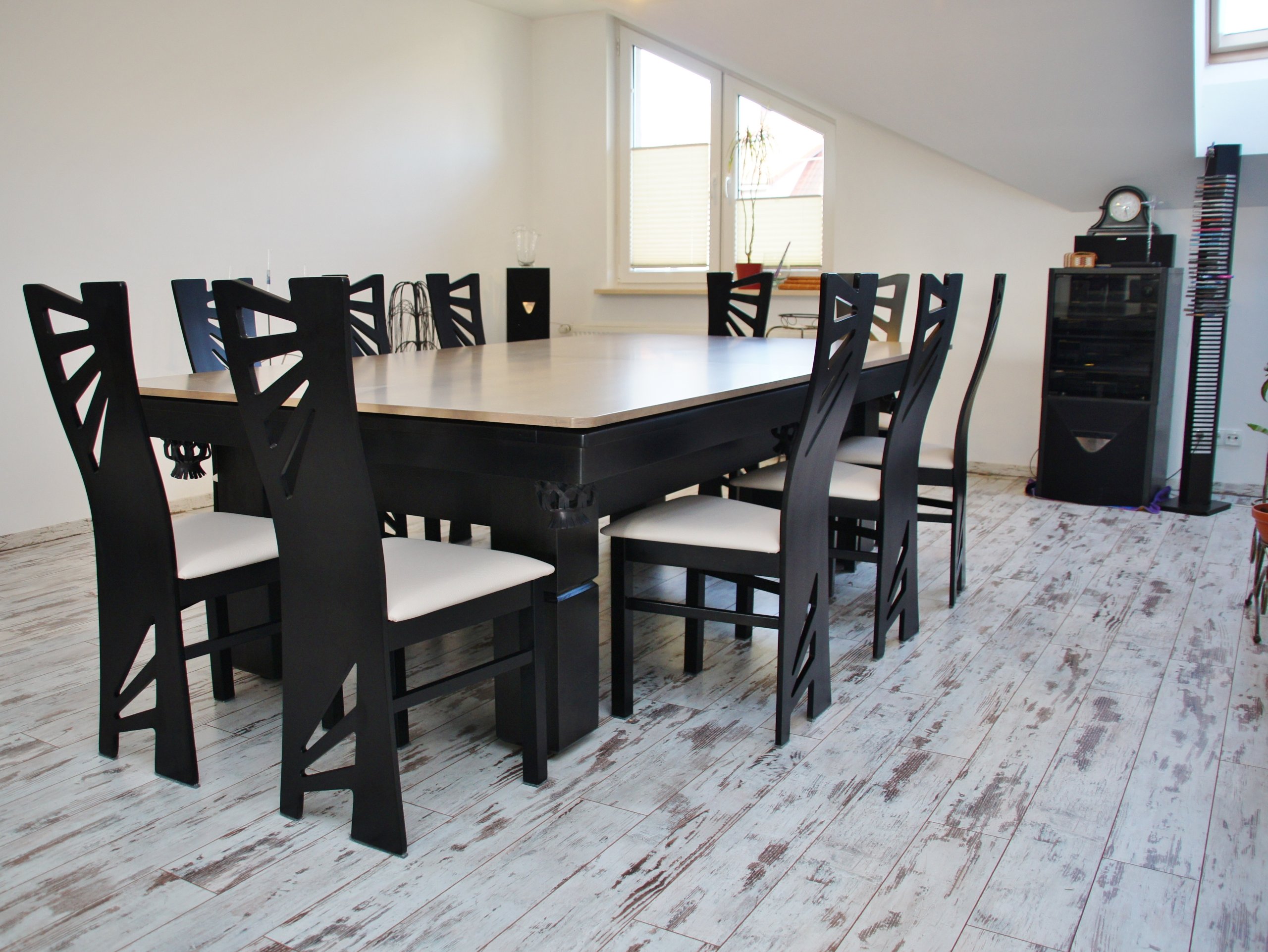 - Для производства каждой из моделей бильярдов, съедобного, конференции, праздников и стульев мы всегда подходим индивидуально. Затем мы даем возможность выбрать любой цвет стола, ткани или обивки для стульев. Наше предложение включает в себя 45 цветов окраски дерева по цене и сотни цветов RAL за дополнительную плату.