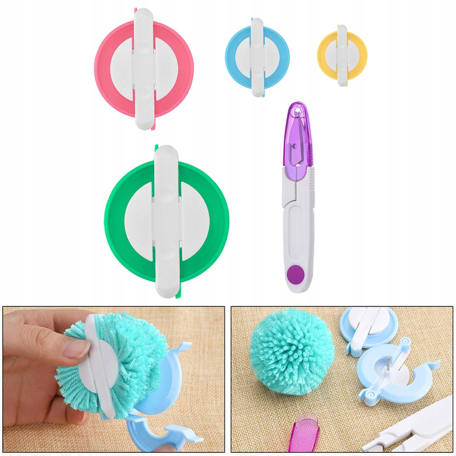 Приспособления для помпонов: 3,6 см/1,42 дюйма; 4,6 см/1,81 дюйма; 6,4 см/2,52 дюйма; 8,6 см/3,39 дюйма