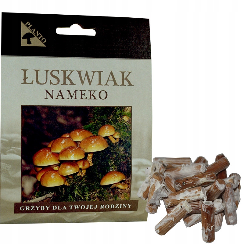 Мицелий продается в виде деревянных колышков, заросших мицелием шкал nameko (pholiata nameko)