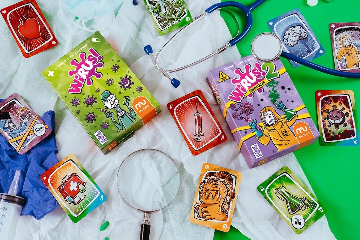 Вирус! – динамичная и быстрая игра, которая понравится каждому члену вашей семьи, особенно детям. С вашей небольшой помощью игра может заразить даже 6-летних детей. Последние исследования показывают, что основные симптомы заражения этим вирусом! есть неконтролируемые взрывы смеха и часы веселья. Пришло время взять дело в свои руки и разобраться с вирусами. Столкнитесь с пандемией и станьте первым, кто получит тело, свободное от инфекции. Защитите себя от вирусов других игроков, используйте вакцины для защиты своих органов и блокируйте действия противников с помощью соответствующих методов лечения. В этом бою нет места медицинской этике – разрешены все ходы! Миллионы игроков были заражены вирусом! Заразитесь и вы – это безопасно!