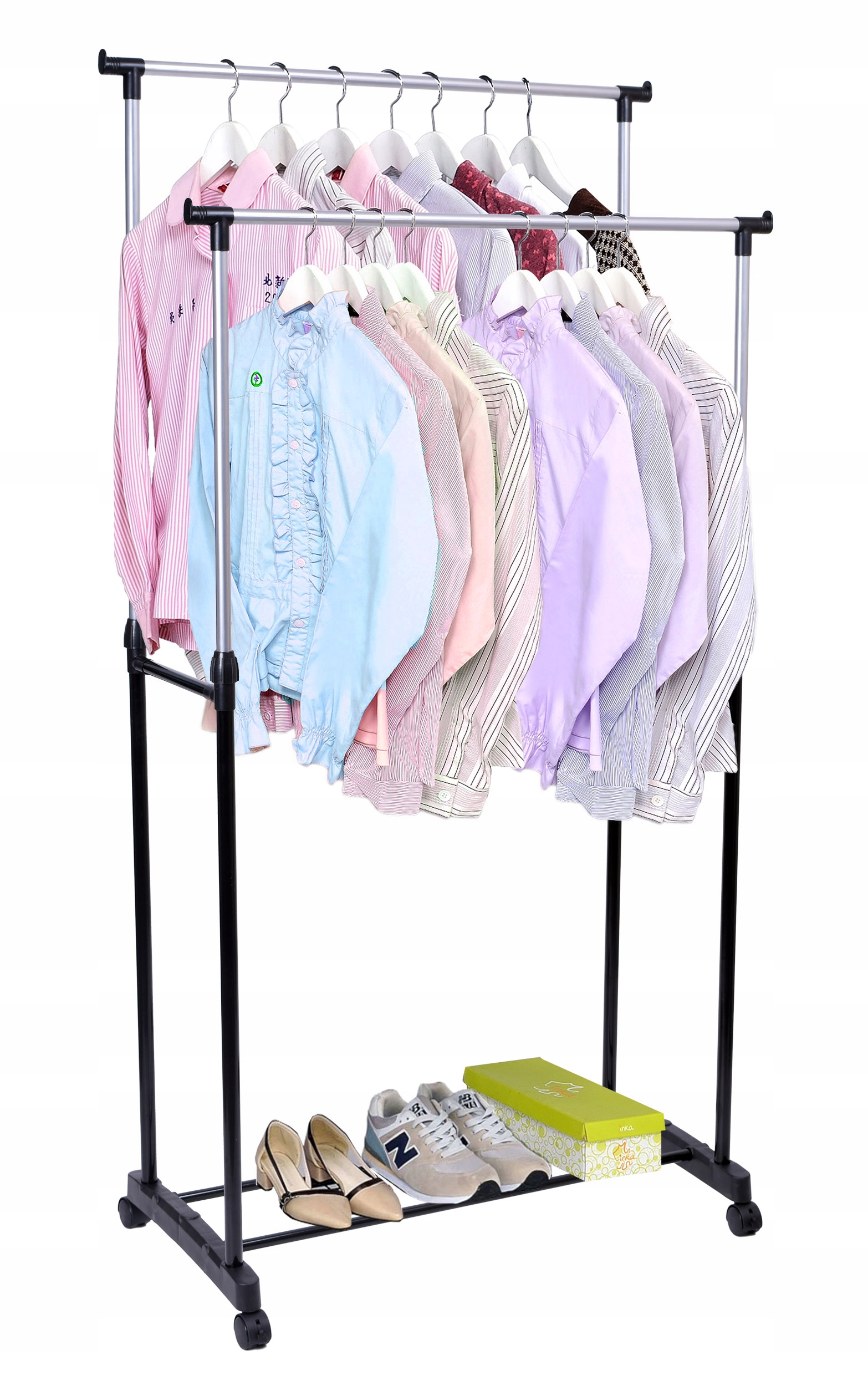 На этом аукционе мы предлагаем практичный и долговечный вешалка для гардероба на колесах MIA. Вешалка будет работать в каждом доме и в офисе, где не хватает места для повесы. Наш продукт был оснащен двойным стержнем , который можно легко отрегулировать , используя ручки и колеса, позволяющие удобное движение . Дополнительным преимуществом вешалки является долговечная и удивительная емкость, а также удивительная накладка для обуви и накладывает на концы стержня , предотвращая скольжение одежды.
