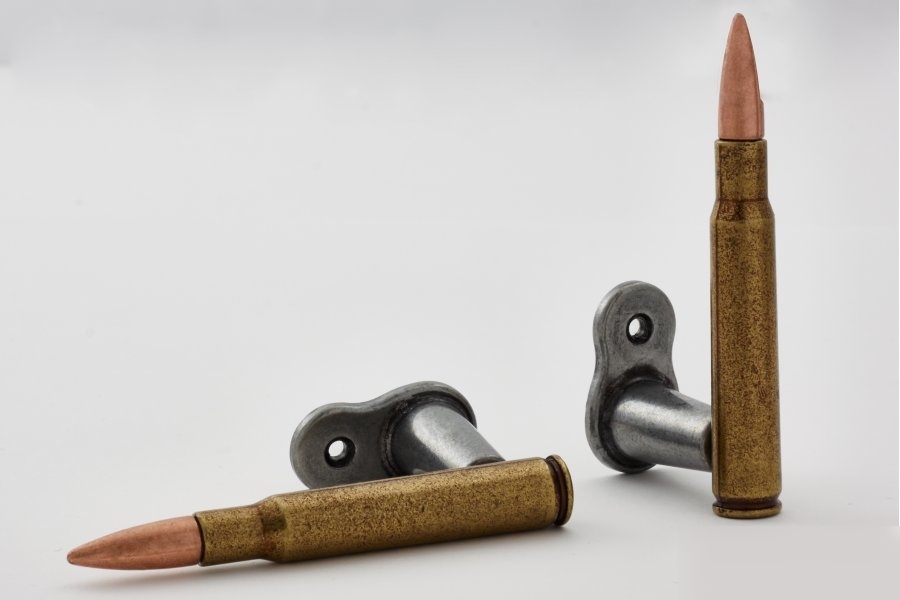 оболочка цвета старого золота, пуля цвета меди, основание серебристо-серого цвета к настенная.