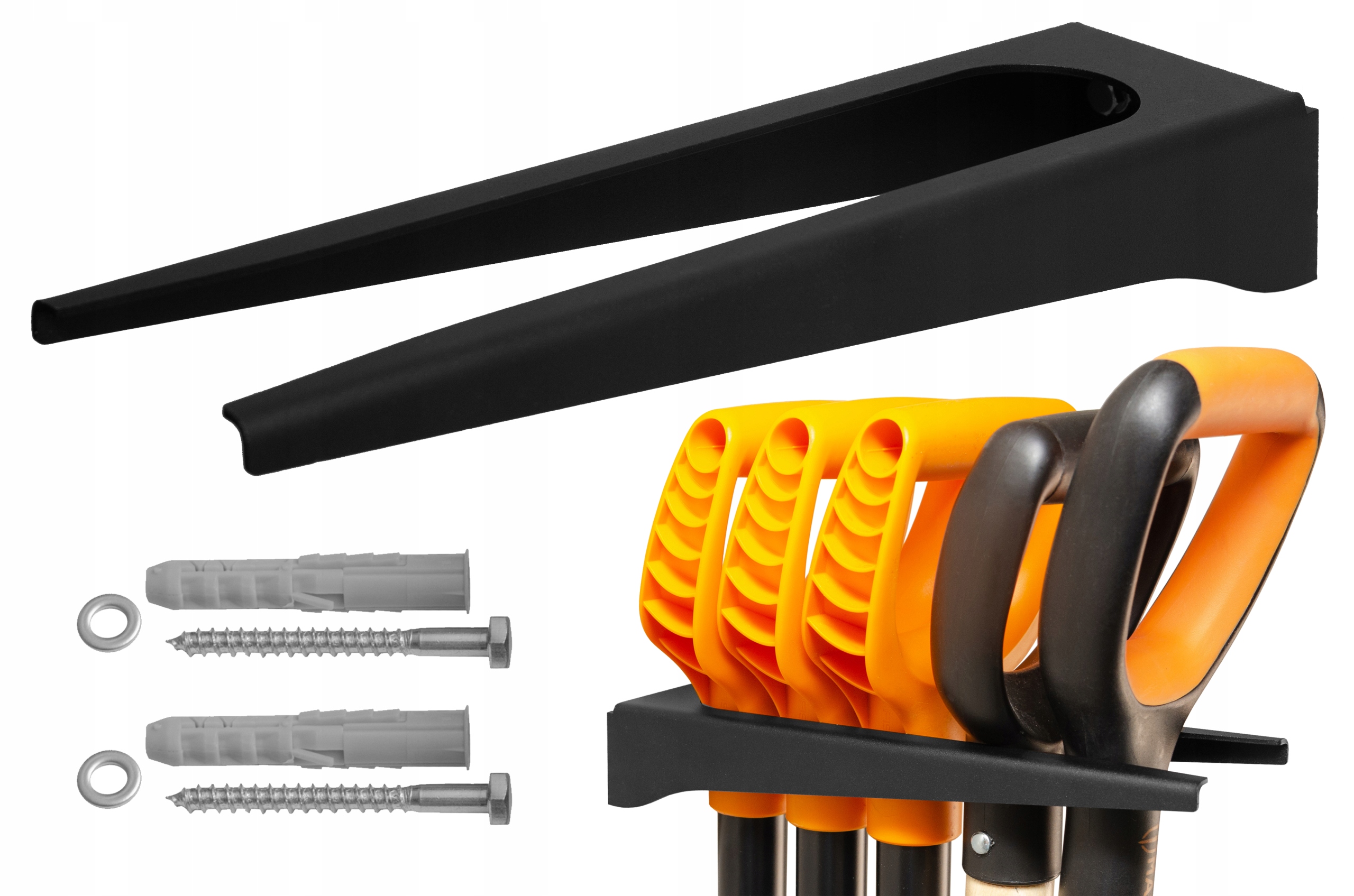 - универсальная вешалка - подходит для большинства лопат, заступов, граблей и экскаваторов, доступных на рынке, как с ручкой, так и с ручкой. прямой одного фасона (подвешивается вниз)