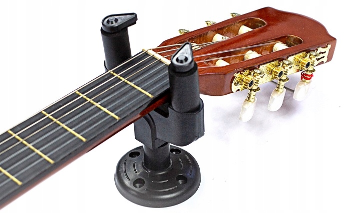 - Универсальная настенная вешалка подходит для большинства акустических, классических и электрогитар, бас-гитар и других струнных инструментов, таких как гавайская гитара или банджо.