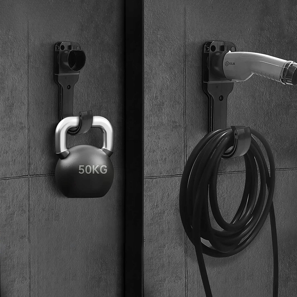 🚗 Продуманный дизайн: вам не придется беспокоиться о том, что вы застрянете на грязном полу гаража. Благодаря этому он не мешается и в гараже появляется больше места для хранения других вещей. Держатель кабеля не только поддерживает порядок в гараже, но и предотвращает выпадение автомобильного зарядного кабеля снаружи.