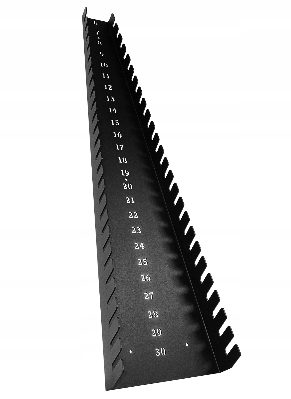 Настенная вешалка для набора рожковых ключей. Вешалка изготовлена из стального листа толщиной 2 мм с порошковым покрытием. В вешалке имеется 25 ячеек для ключей.