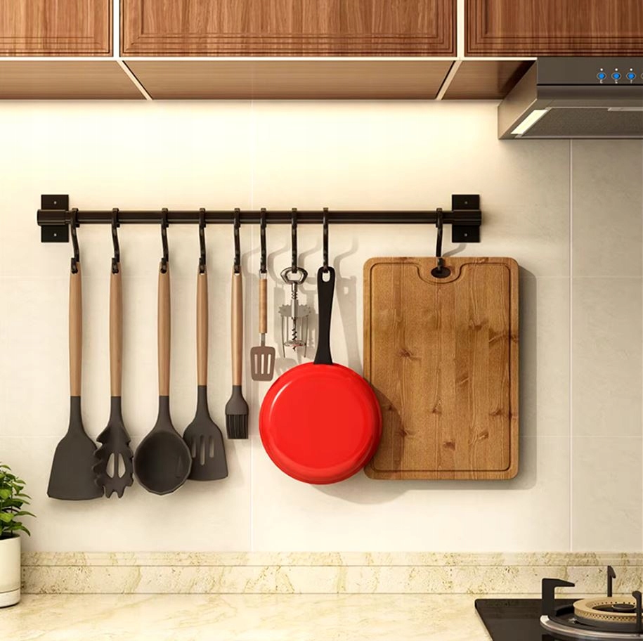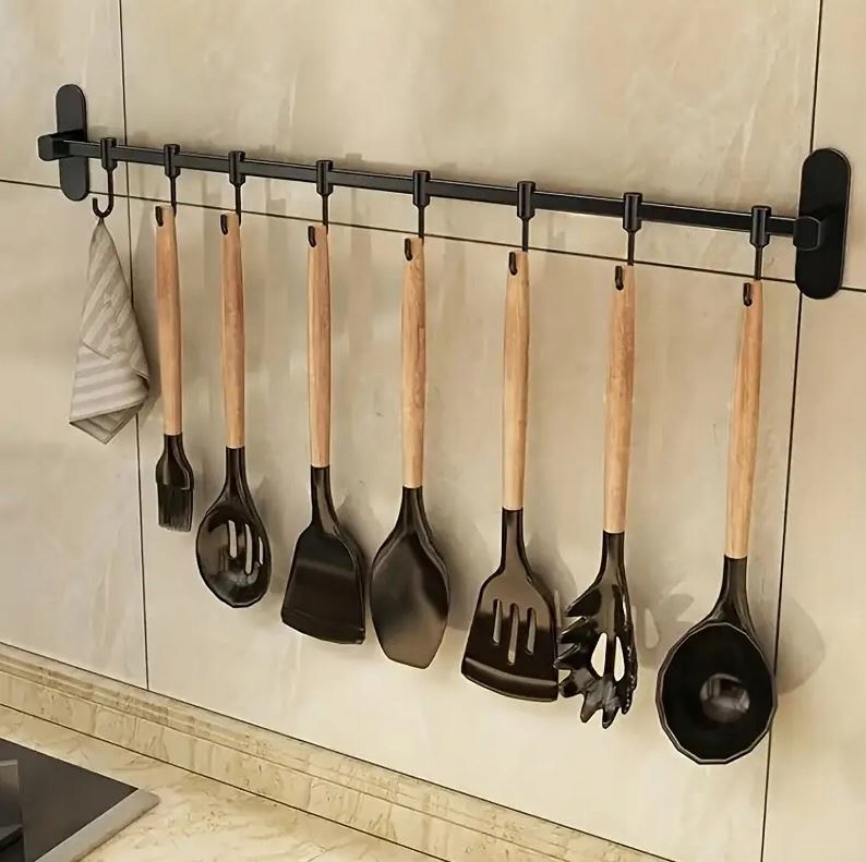 - Многофункциональность: Идеально подходит для подвешивания различной кухонной утвари – от ложек до половников и ножей, которые позволяет удобно организовать пространство. Крючки подвижны, поэтому вы можете регулировать расстояние между ними в соответствии с вашими потребностями.