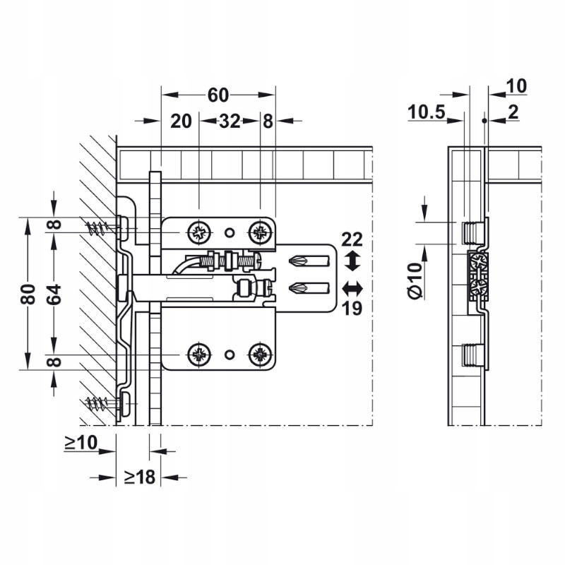 Подвеска рассчитана на большие нагрузки, до 240 кг. Версия 807 RV отличается формой, позволяющей устанавливать ящики по всей глубине шкафа. Кулон требует фрезеровки в пластине, что делает его очень тонким.