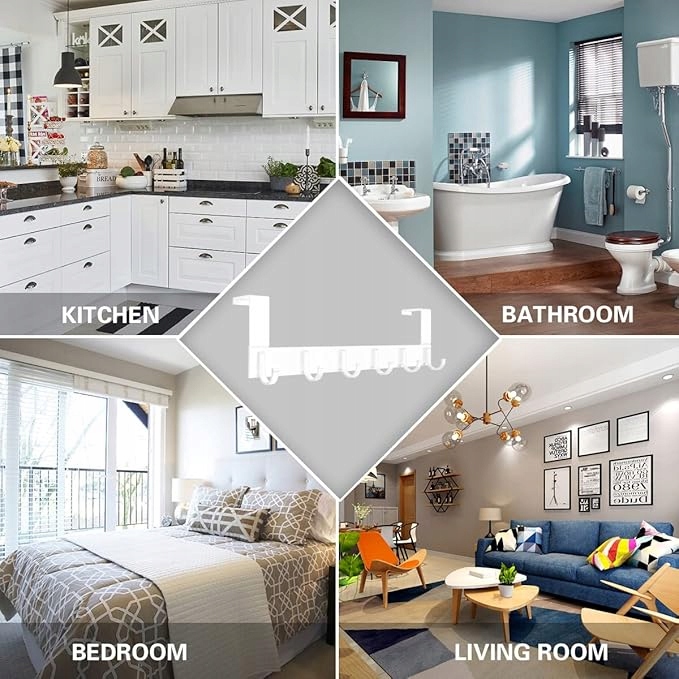 Вешалка для одежды Anjuer, 6 крючков, алюминий над дверью, белые ящики