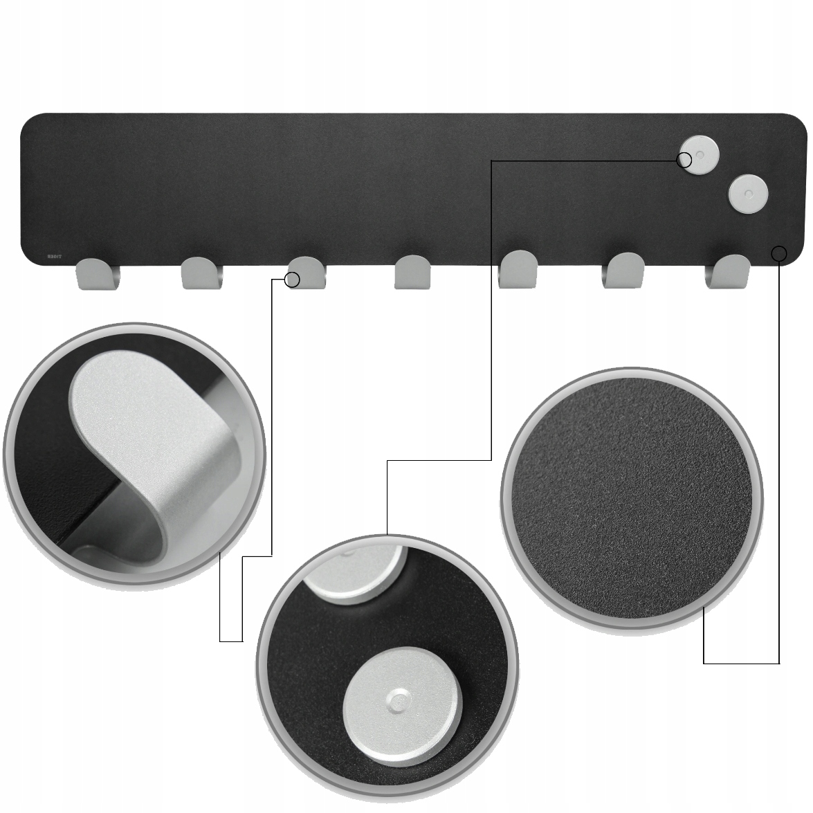 - Магнитная доска расположена над крючками.
