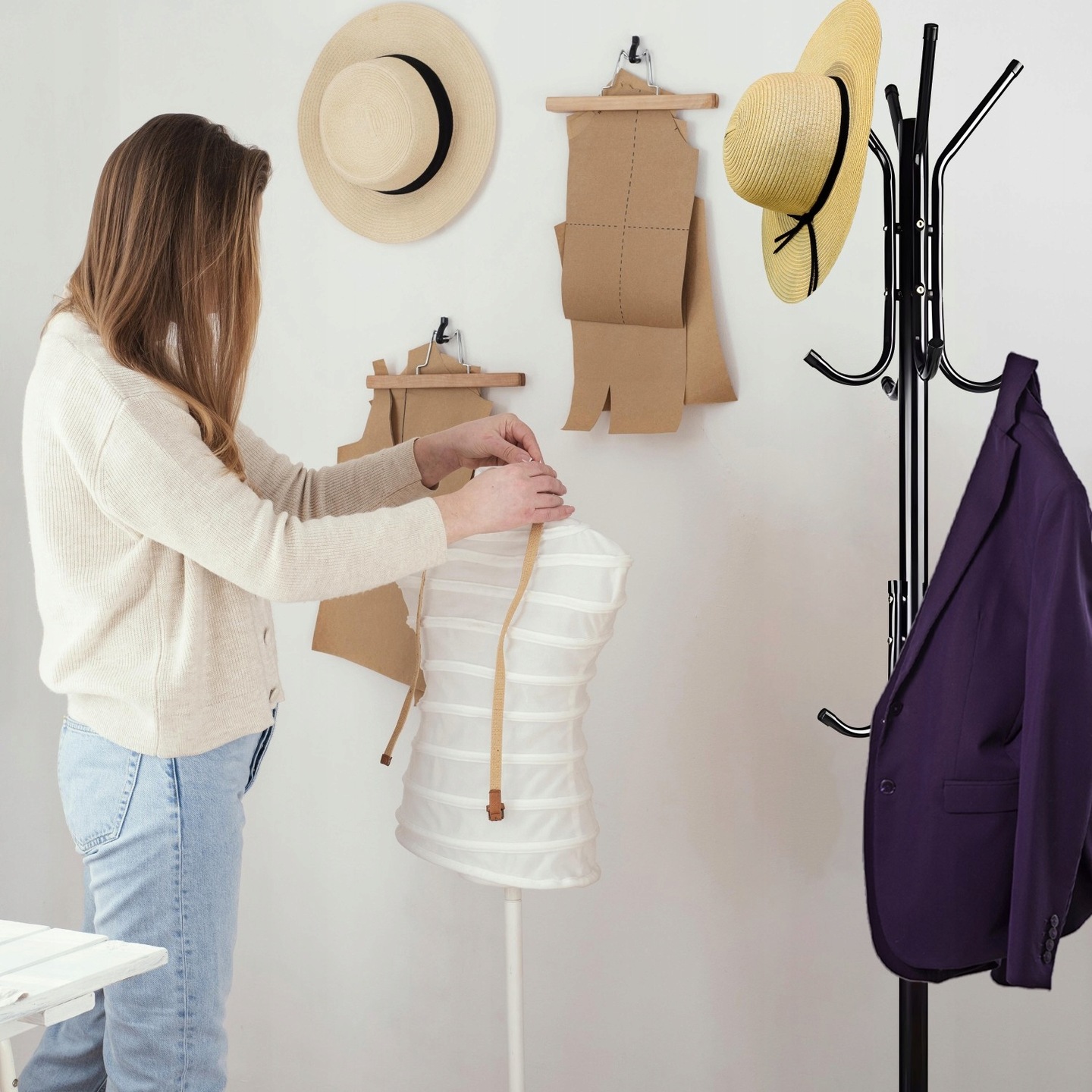 Напольная вешалка проста в установке и не требует использования сложных инструментов. Вы можете быстро и легко собрать его и разместить в нужном месте, чтобы насладиться элегантной подставкой.