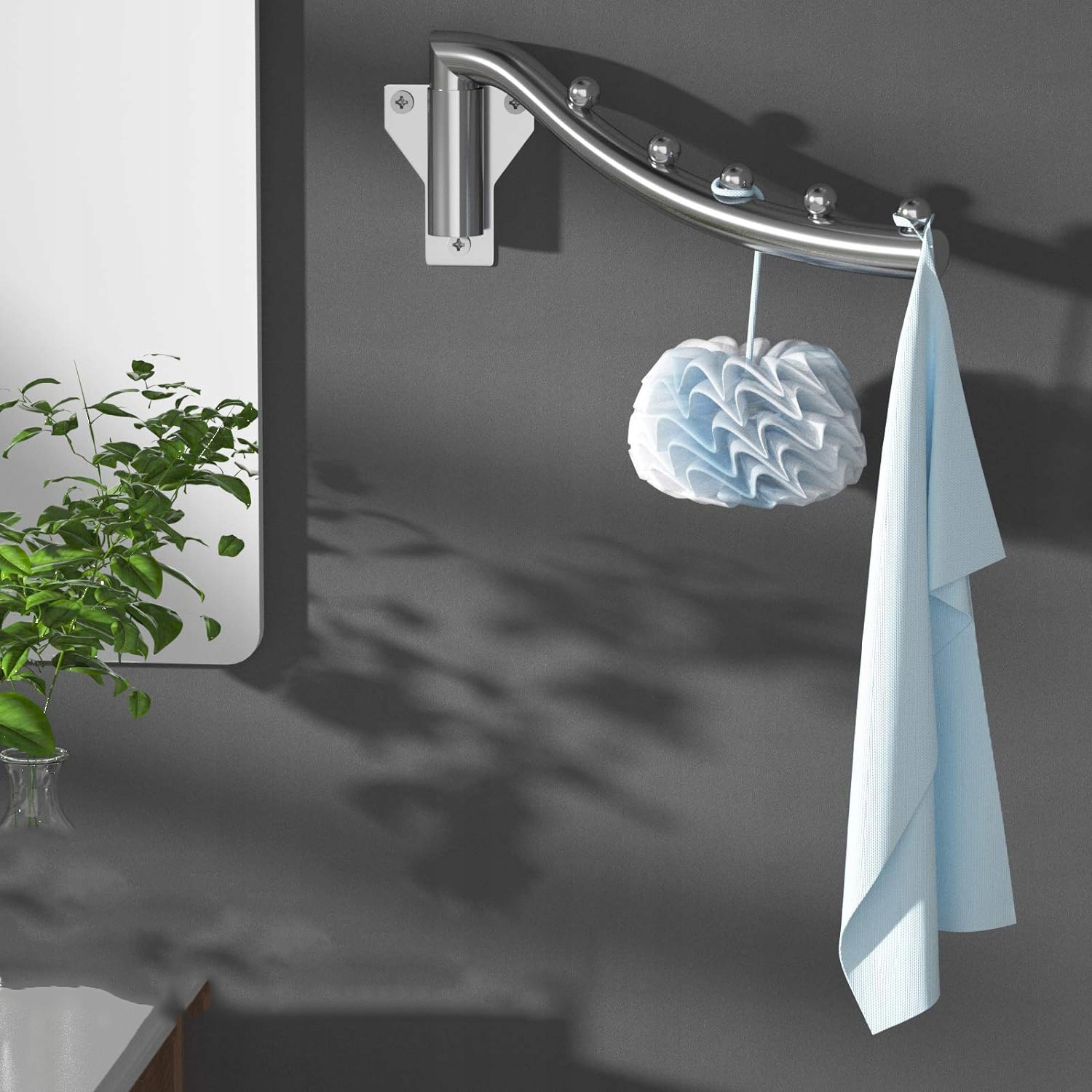 Настенный держатель вешалки для белья можно поворачивать на 180 градусов влево и вправо. Его можно переместить ближе к стене, чтобы сэкономить место, когда он не используется. Настенная вешалка занимает очень мало места. Эта вешалка для одежды выдерживает до 5 кг. Таким образом, вы можете использовать его, чтобы повесить одежду в гостевых комнатах, спальнях, на боковой стенке шкафа, в подсобном шкафу, в небольшом пространстве и т. д.