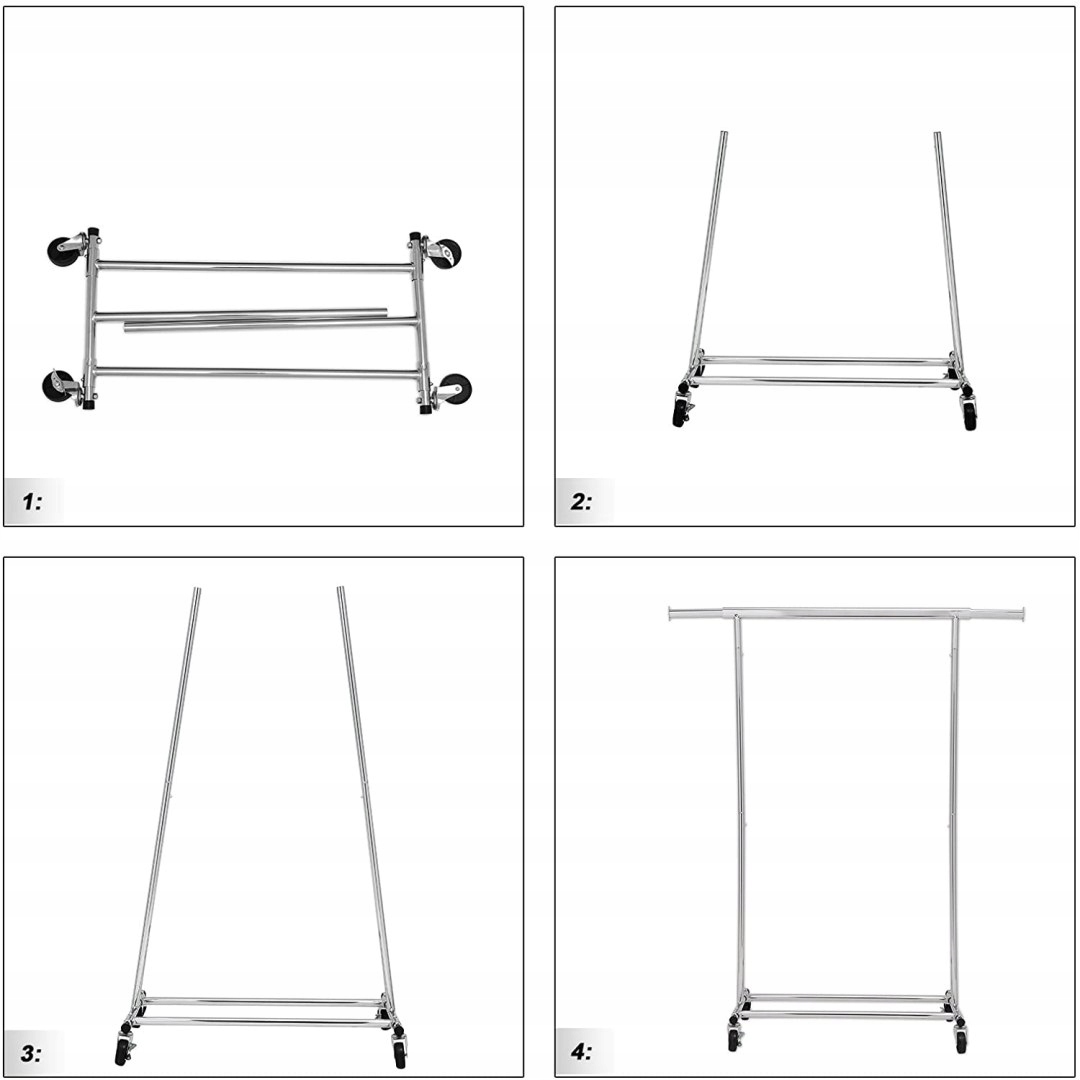 МЕТАЛЛИЧЕСКАЯ ВЕШАЛКА ДЛЯ ОДЕЖДЫ НА КОЛЕСАХ, СЕРЕБРЯНАЯ, РЕГУЛИРУЕМАЯ