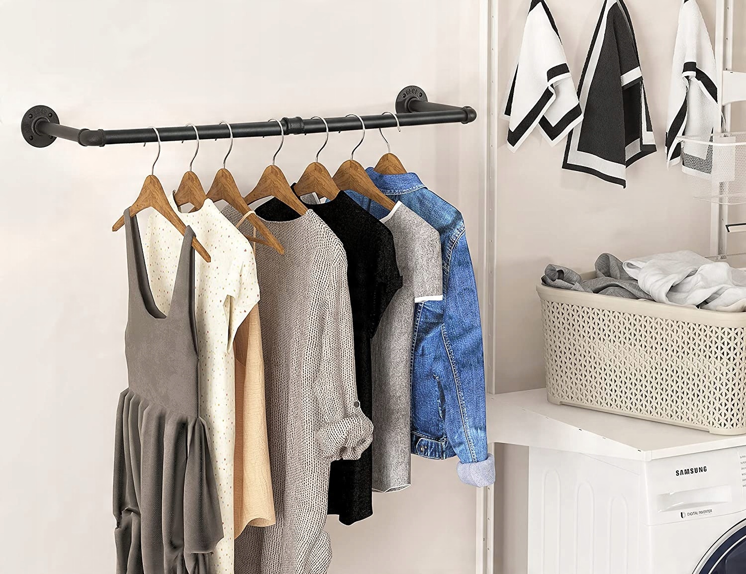 ОРОПС Промышленная вешалка для одежды, комплект из 2 шт., 92 см, крепится на съемная металлическая вешалка для хранения ретро-одежды на стене (двойное основание)