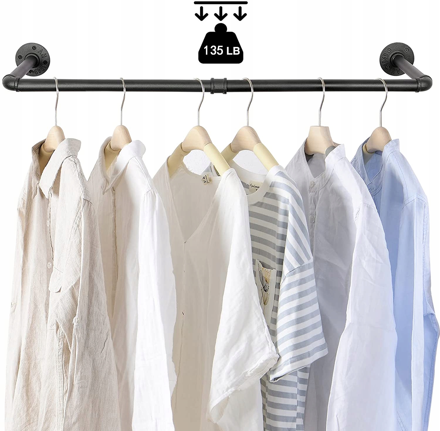 ОРОПС Промышленная вешалка для одежды, комплект из 2 шт., 92 см, крепится на съемная металлическая вешалка для хранения ретро-одежды на стене (двойное основание)