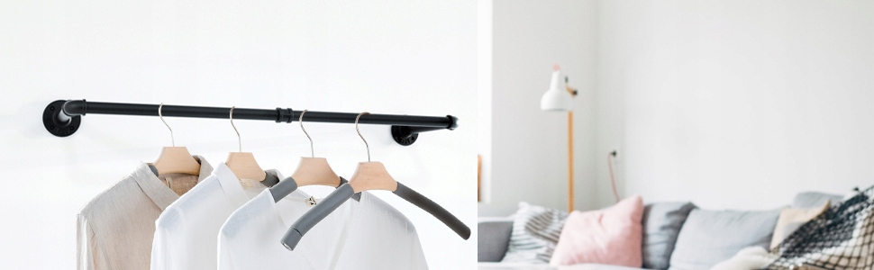 - Прочность и долговечность: вешалка для одежды изготовлен из прочного черного ковкого железа, на нем можно положите много пальто и курток, и вам не придется беспокоиться о весе