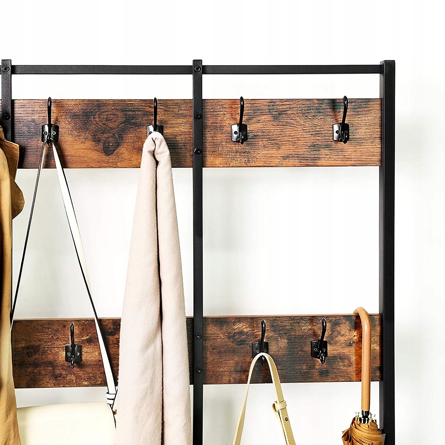 Металлическая конструкция обеспечивает устойчивость мебели, поэтому это идеальное изделие для любого сезона, особенно мы оценим его зимой, когда вешаем тяжелые куртки и пальто, шали, шарфы и шарфы на крючках. p>
