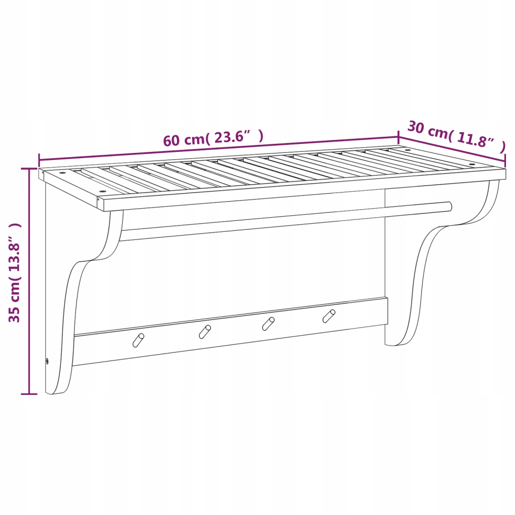 Полотенцедержатель, 60х30х35 см, массив ореха