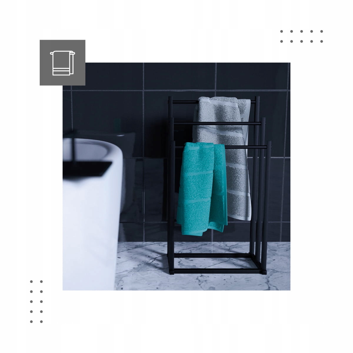 Вешалка для полотенец изготовлена из высококачественной стали с черным порошковым покрытием. Это лучший материал для использования в условиях повышенной влажности.
