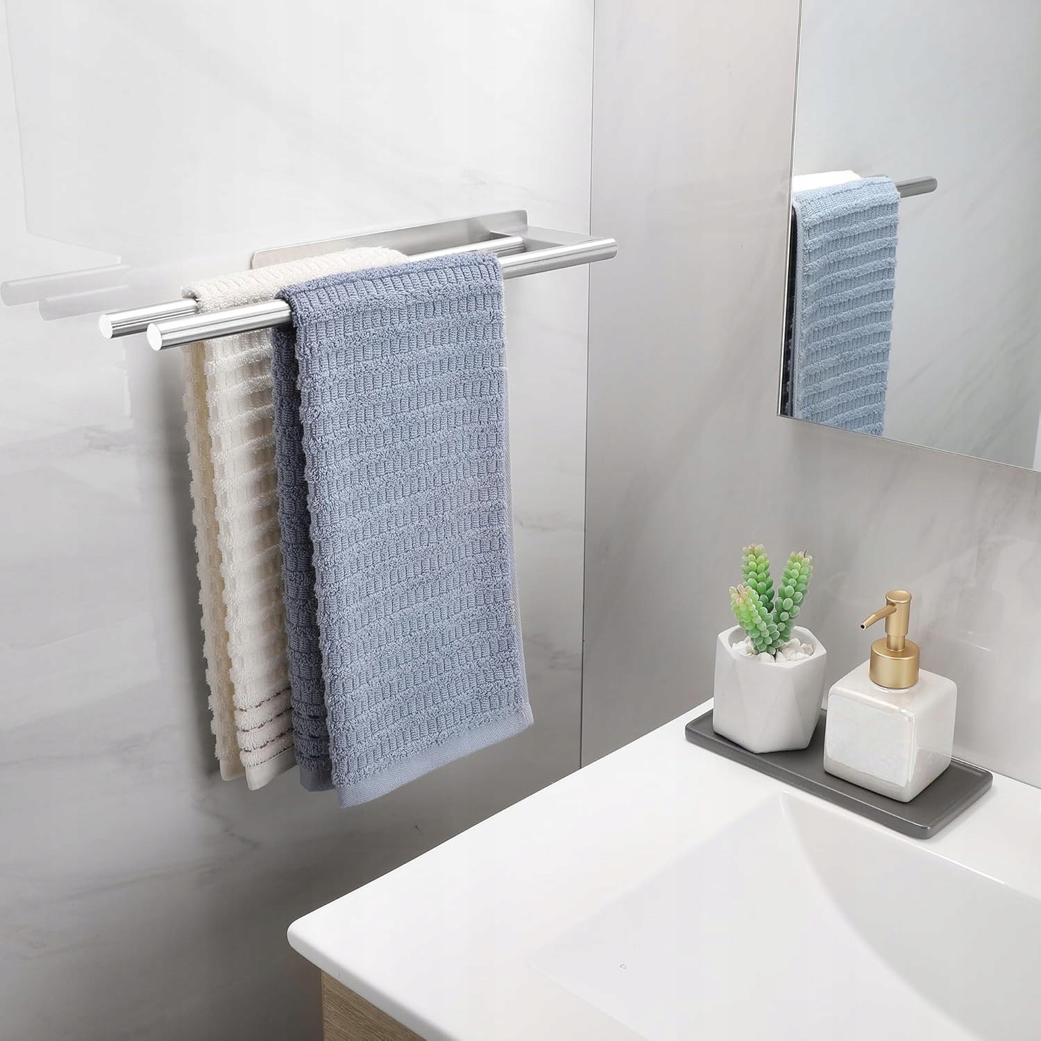 Вешалка для полотенец из матовой нержавеющей стали 304, прочная и нержавеющая, элегантная, благородная, антикоррозийная, водонепроницаемая. Самоклеящийся держатель для полотенец, который можно прикрепить, оторвав, что просто и удобно