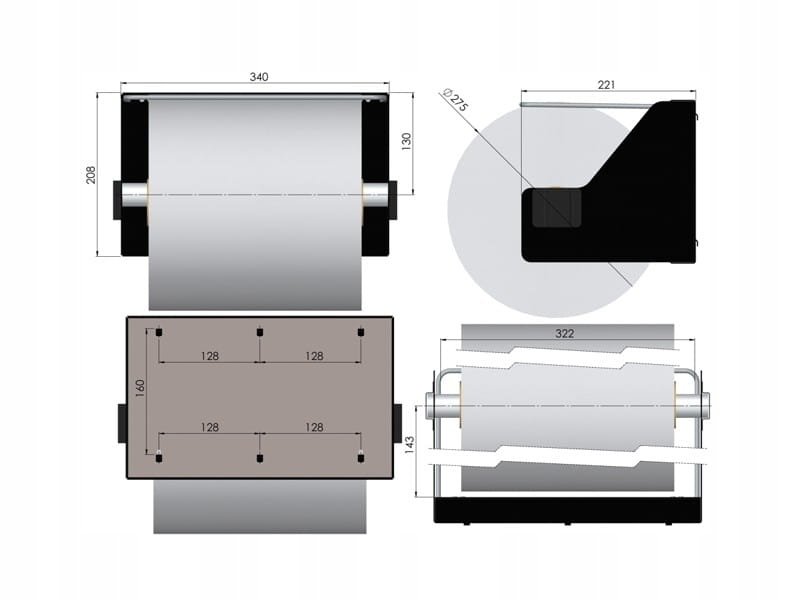 - максимальные размеры рулона: диаметр 275 мм, рулон высота 320 мм