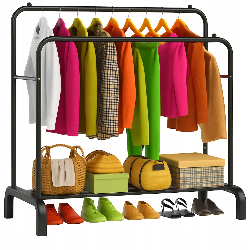 ВЕШАЛКА ДЛЯ ОДЕЖДЫ ДЛЯ ОБУВИ НАПОЛЬНАЯ СТОЙКА ЧЕРНАЯ ДВОЙНАЯ МЕТАЛЛ.