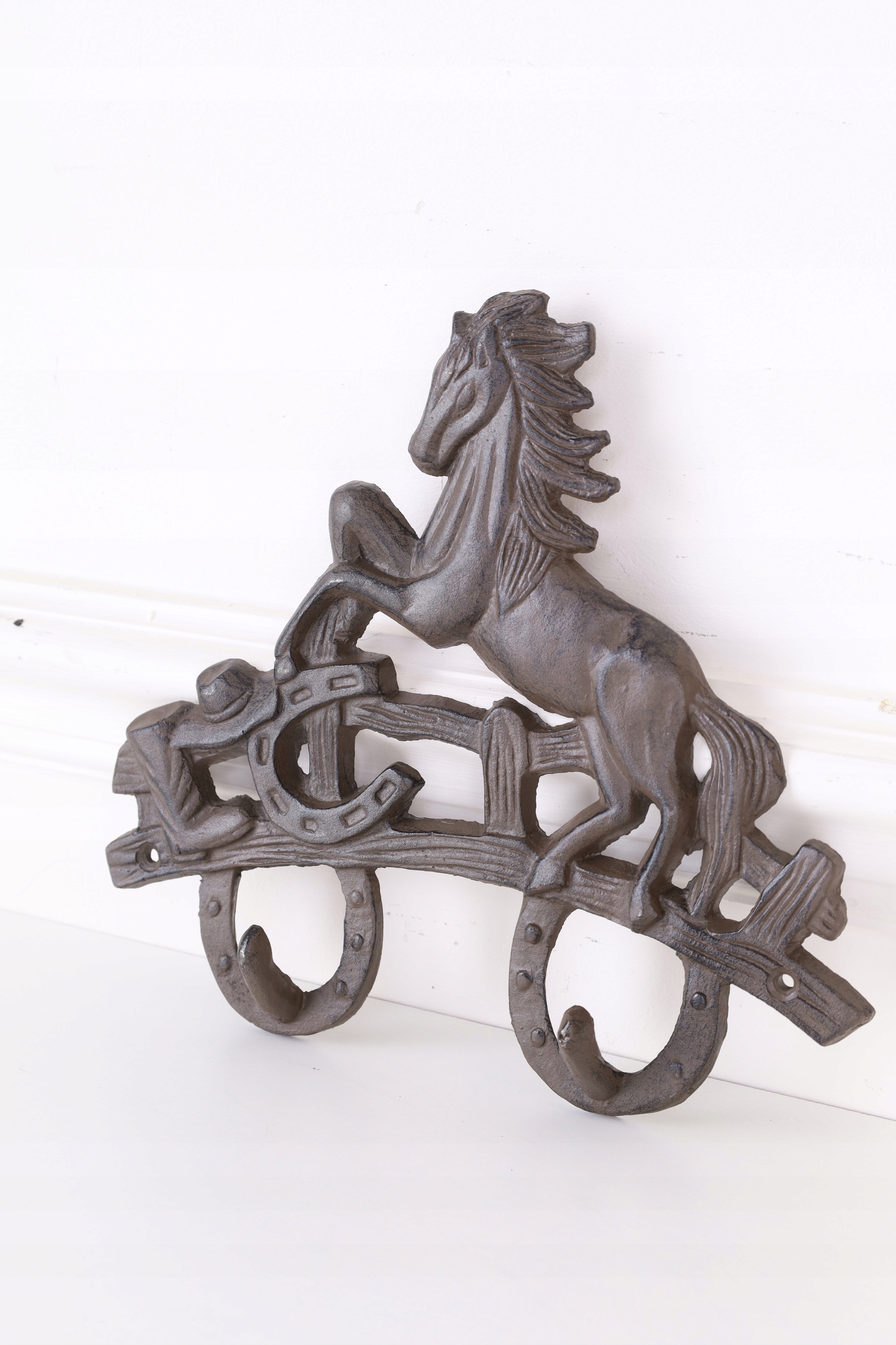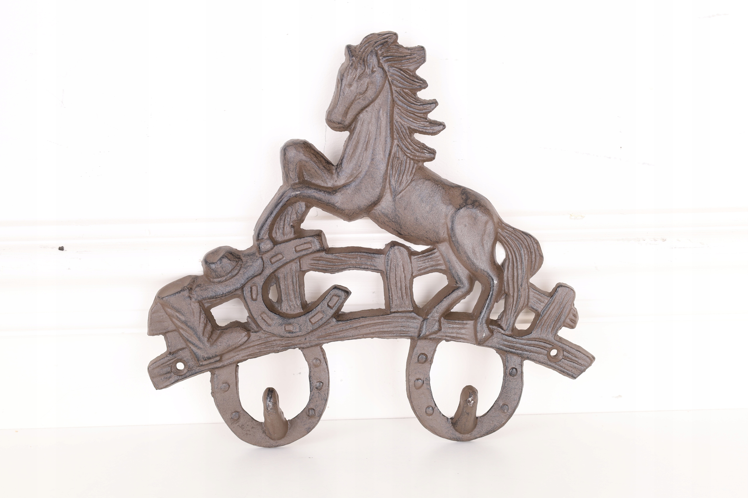 КОРИЧНЕВАЯ ВЕШАЛКА, чугунная лошадка - прочная, ДВА КРЮКА