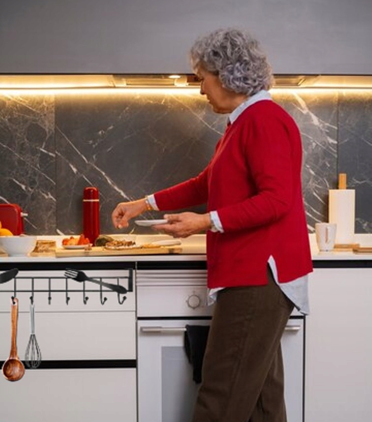 Вешалку можно неинвазивно установить на любую дверь или ящик кухни!