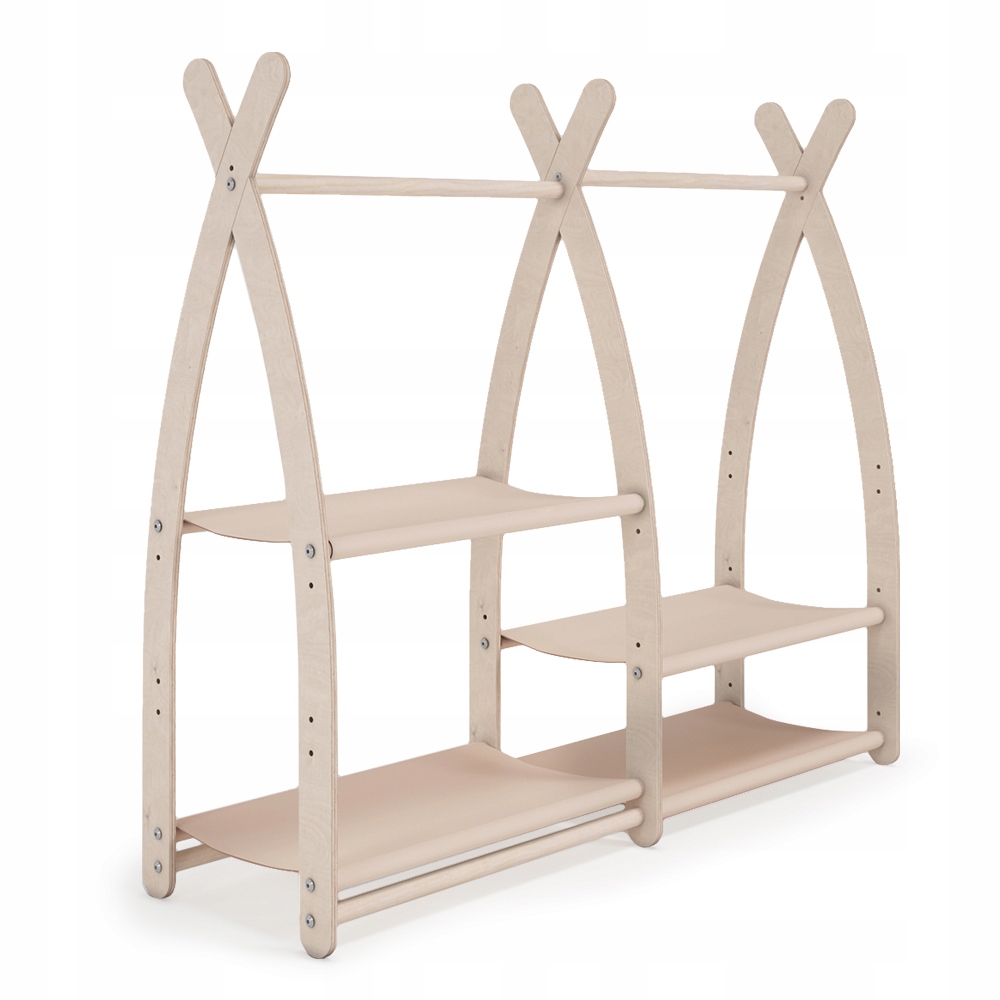Вешалка для одежды Mamoiизготовлена безопасным для детей и окружающей среды способом, с использованием качественных, сертифицированных препаратов. Изделие выдерживает нагрузку до 10 кг. Точная подгонка каждого элемента, гладкие края и деликатный материал предотвращают травмы и обеспечивают безопасность. В комплект входят боковины конструкции, брусья, материал бежевого цвета и металлические элементы крепления. Бежевый оттенок гарантирует стильный и вневременной вид. Простая форма гарантирует вневременность и универсальность.