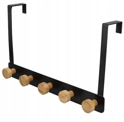 Металлическая вешалка для одежды в современном стиле с бамбуковыми ручками. Удобная вешалка, которую можно легко закрепить на двери, позволит вам организовать пальто и другую одежду.